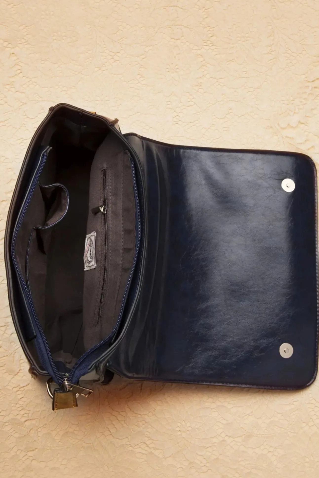 Deze 50S Antique Messenger Bag In Blue Maakt Alle Fashion Flaters Uit Je Verleden In Één Keer Goed, Want Hij Is Echt Te Mooi Om Waar Te Zijn! Een Prachtige, Faux Leren, Medium Sized Tas. De Mooie Bruine Details Zijn Voorzien Van Bloemachtige Uitsnedes En De Echte Eyecatcher Is De Strik-Achtige Versiering Voorop. Met Verborgen Magneetsluiting En Aan De Binnenkant Nog Een Extra Ritssluiting. Wordt Geleverd Met Een Los, Verstelbaar Hengsel. De Tas Is Gevoerd Met Een Bruine Stof En Heeft Handige Binnenvakjes Waarvan Één Ook Met Ritssluiting. Er Past Geen A4 In, Maar Hij Is Wel Groot Genoeg Voor Je Ipad En Al Je Andere Belangrijke Spulletjes, Zoals Een Mobiele Telefoon En Portemonnee.