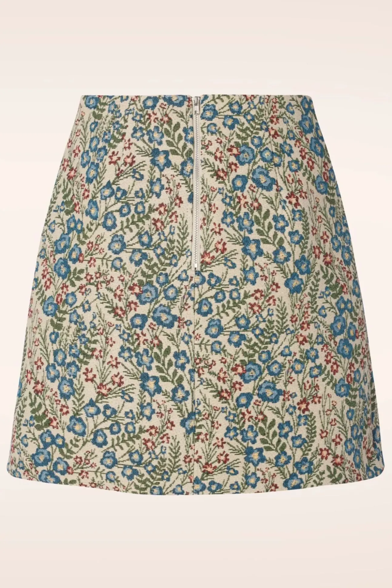 Nieuwe Lente/Zomercollectie ~ Zet De Bloemetjes Buiten Dit Voorjaar Met Dit Classy, Korte A-Lijn Rokje. Uitgevoerd In Een Iets Dikkere En Stevige, Crèmekleurige Jacquard Stof (Stretcht Niet!) Voorzien Van Een Kleurrijk Retro Bloemenpatroon.