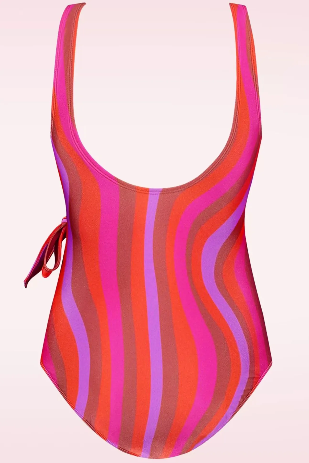 Nieuwe Lente/Zomercollectie ~ Glamorous, Classy En Vol Zelfvertrouwen Aan De Rand Van Het Zwembad Of Op Het Strand Dit Seizoen? Ga Dan Voor Dit Badpak Met V-Hals! Super Flatterend En Ongelofelijk Comfortabel. Deze Beauty Heeft Soft Cups Voor Een Optimale Ondersteuning En Is Geheel Gevoerd Zodat Het Badpak Niet Doorschijnt. Ze Heeft Een Sexy V-Hals En Door Het Strikdetail Aan De Zijkant Kun Je Haar Op Verschillende Manieren Dragen. Uitgevoerd In Een Stretchy En Licht Glanzende Stof Met Een Gestreepte Print In De Kleuren: Fuchsia, Paar, Oranje En Bruin.