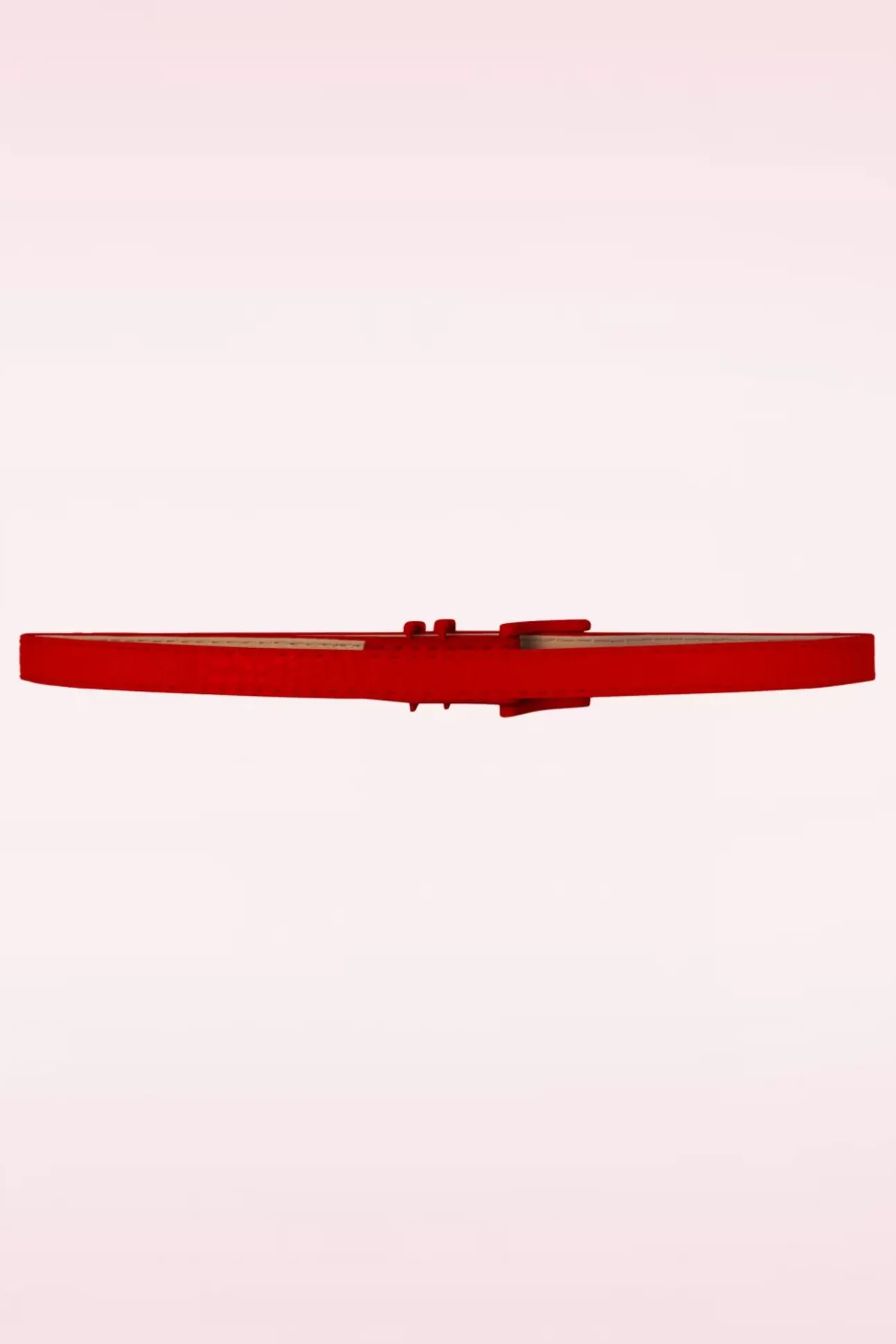 Met Onze 50S Cecile Beltin Crocodile Red Geef Je Elke Outfit Een Subtiele Vintagetouch! Deze Smalle, Verstelbare Ceintuur Is Uitgevoerd In Lipstickrood ‘Faux’ Krokodillen Lakleder, Afgewerkt Met Een Rood Gespje In De Vorm Van Tweekleine Strikjes… Very Cute! Een Veelzijdige Beauty Die Eigenlijk Overalbij Past; Die Wil Je Toch Niet Missen In Je Collectie? Voorkomkrokodillentranen En Bestel Haar Nu Het Kan! 😉
