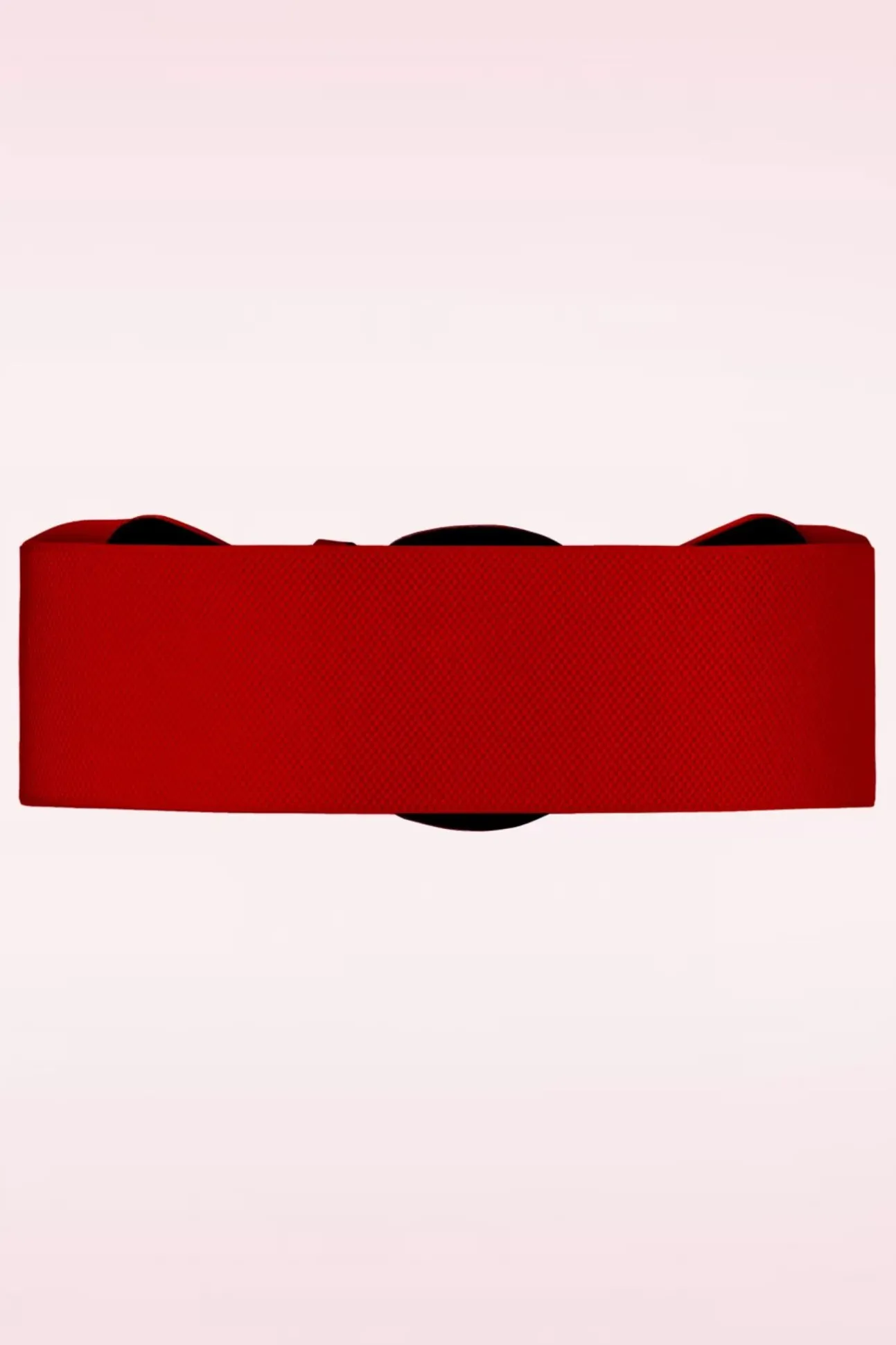 Met Deze Corinne Elastic Riem In Rood Creëer Je Een Prachtige Look In Een Handomdraai! Uitgevoerd In Dieprood ‘Faux’ Lak Leder Met Een Ronde Vintage Stijl Gesp En Een Comfy Elastische Band. Je Mag Trots Zijn Op Je Silhouet!