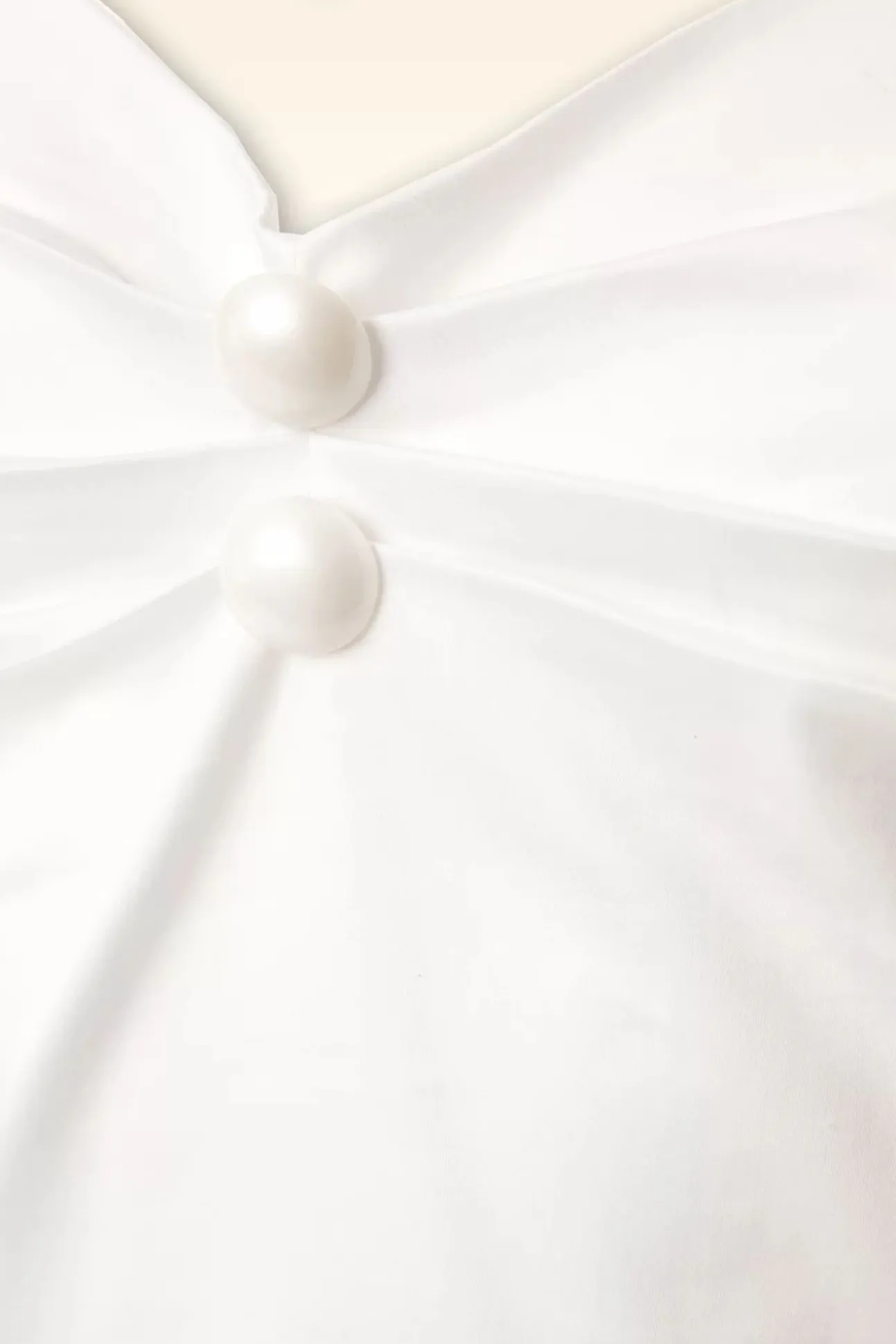 Hola Señorita! De 50S Dolores Top In White Is Een Ware Must-Have! Top In Carmen Style, Schattige Pofmouwtjes Die Off-Shoulder Gedragen Kunnen Worden En Plooitjes Bij De Buste Voor Een Mooi Decolleté. Uitgevoerd In Een Witte Katoenmix Met Een Lichte Stretch Voor Een Heerlijke Pasvorm. The Always Oh So Pretty Dolores!