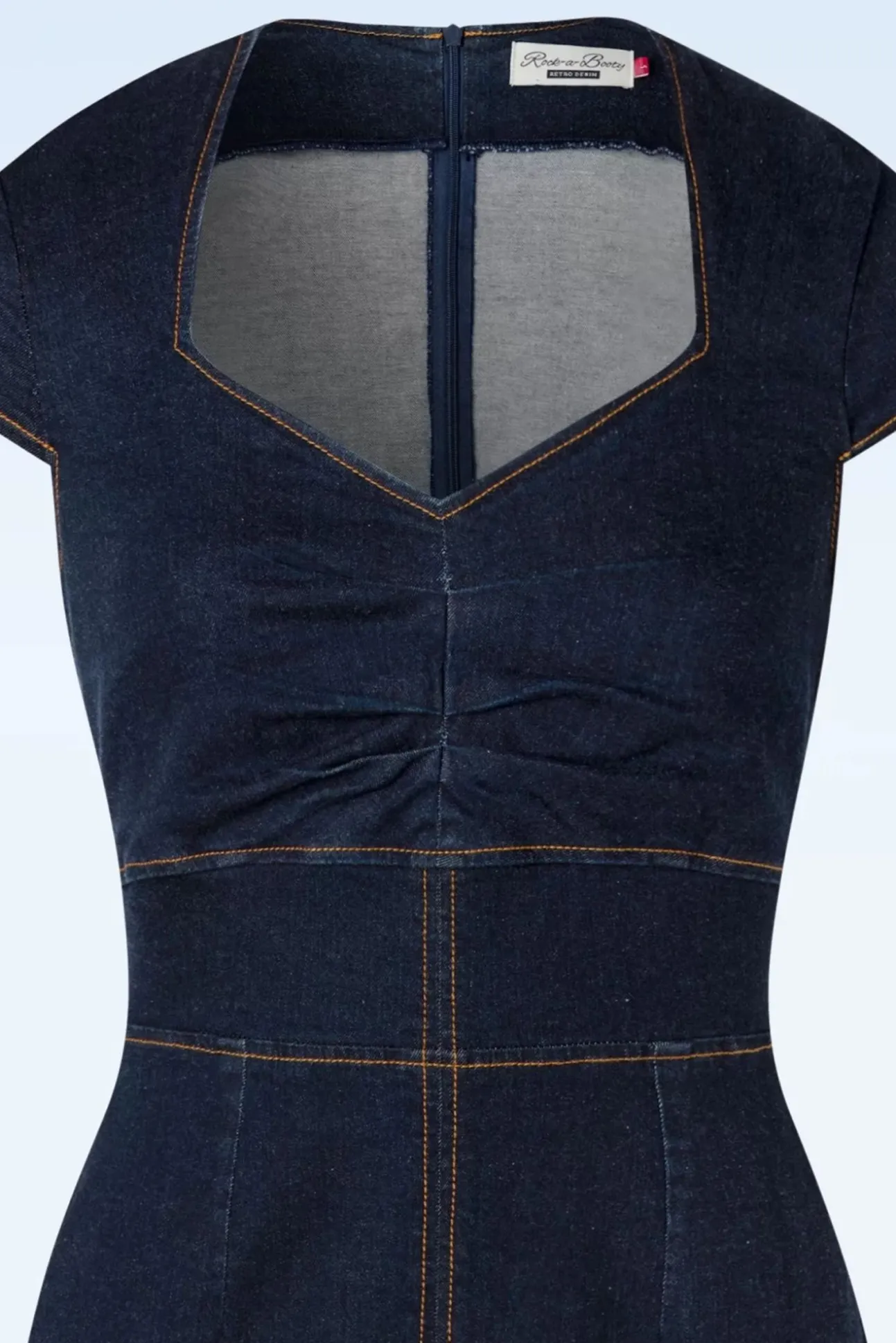 ”In The Right Denim A Woman Can Conquer The World!’ Ons Eigen Merk Rock-A-Booty Staat Bekend Om Haar ‘Denim Dreams’… En Deze Dorothy Pencil Dress In Blue Is Een Denim Droom Die Ons Hartje Op Hol Laat Slaan! Dorothy Heeft Een Sassy Diamantvormige Halslijn, Korte Kapmouwtjes En Een Sexy Split Aan De Voorzijde. De Prachtige Stevige En Stretchy, Donkere Denimblauwe Katoenmix, Volgt Je Rondingen Perfect En Is Afgewerkt Met Geel Stikwerk Voor Die Authentieke Touch. Rock Your Booty… Uhhh… Body In Deze Curve-Hugging Denim Dress! 😉