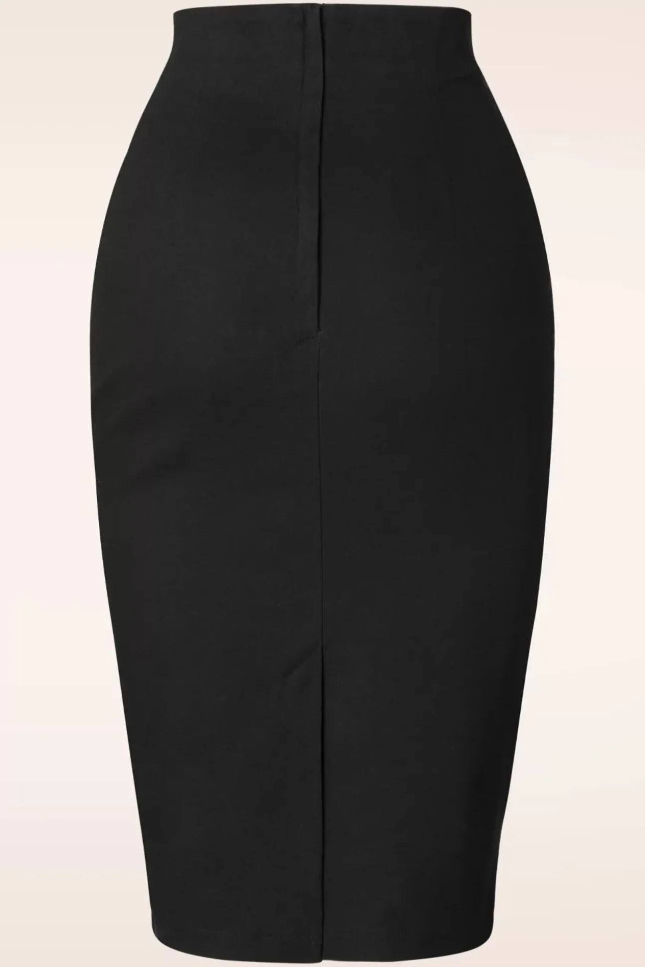 Deze Pittige 50S Fiona Pencil Skirt In Black Laat Je Op En Top Vrouw Voelen! Aansluitend Hoog Taille Model Dat Je Een Echt Pin-Up Zandloper Figuur Geeft. Uitgevoerd In Een Zwarte Katoenmix Met Een Lichte Stretch Voor Een Perfecte Pasvorm. Ready To Rock Your Curves? 😉