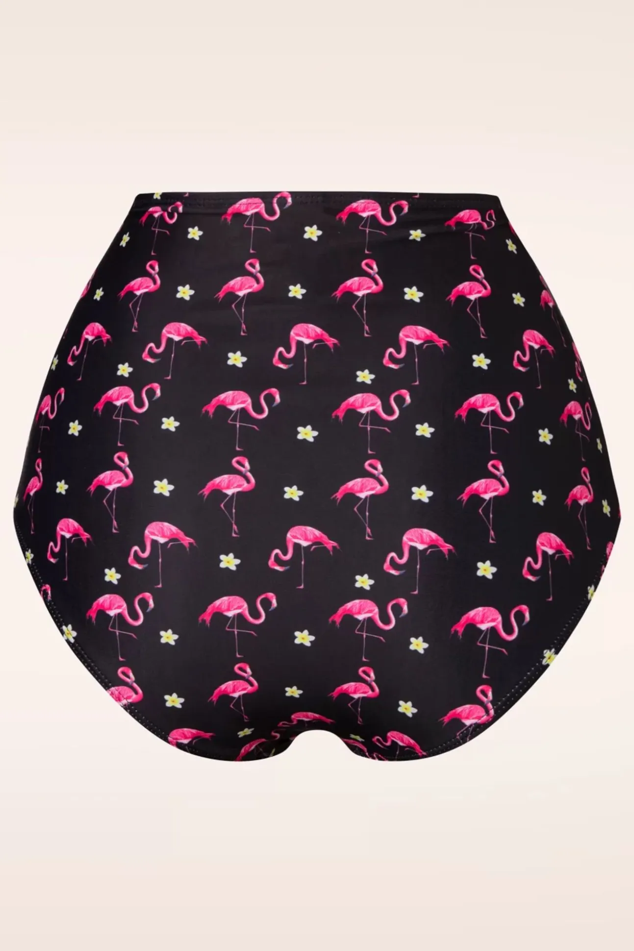 Je Zult Er Fl-Amazing Uitzien Aan De Rand Van Het Zwembad Of Op Het Strand In Deze 50S Flamingo High Waist Bikini Bottoms In Black And Pink! De Hoge Taille Flatteert Enorm En Creëert Een Sexy Zandloper Silhouet. Uitgevoerd In Een Glad Encomfortabel, Stretchy Zwart Stofje Met Een Tropische Print Van Roze Flamingo’s En Witte Bloemetjes. ”What Up Beaches… It’s Flocking Summer!” 😉