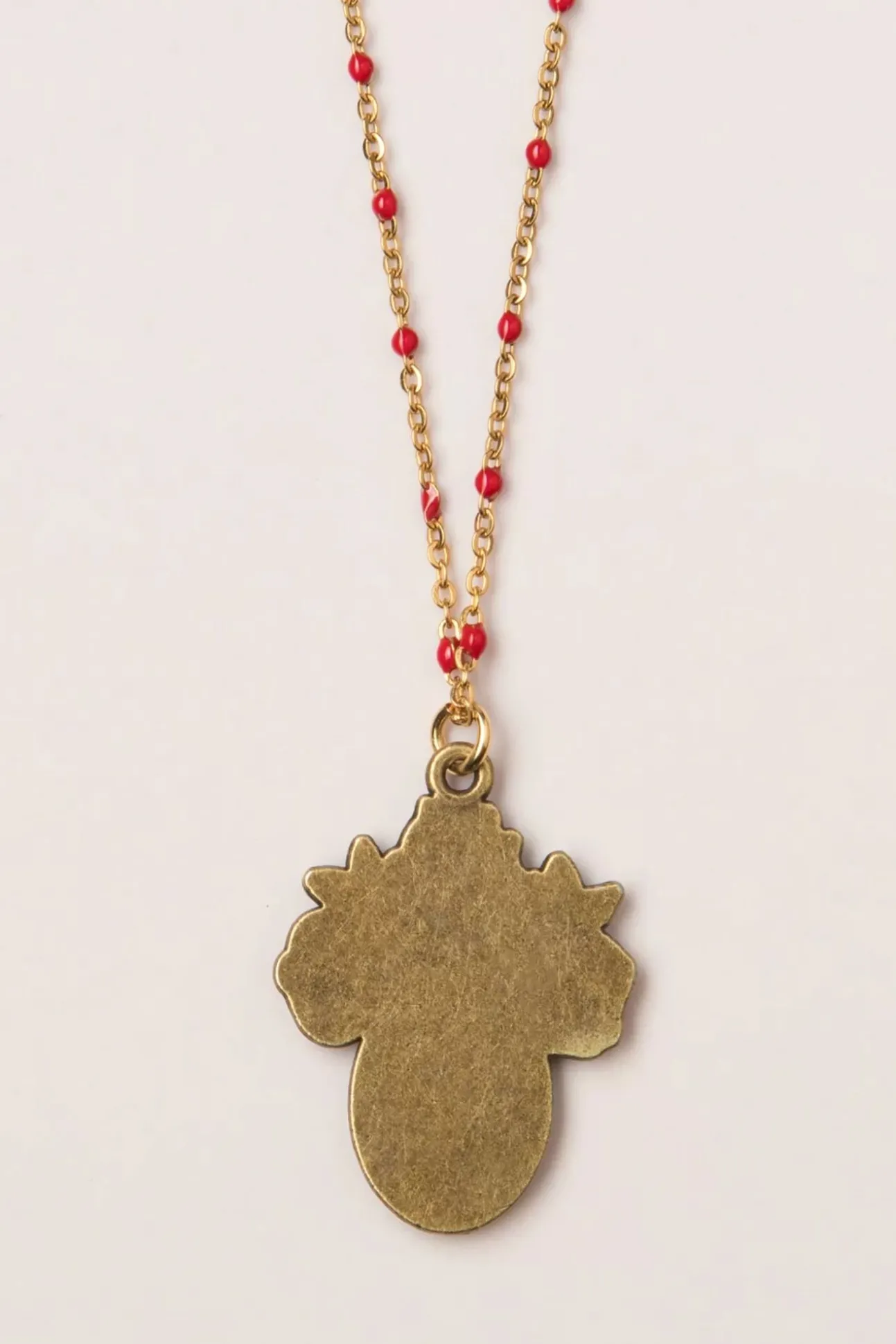 Dat Frida Van Bloemen Hield Zien We Terug In De Vorm Van Deze Prachtige 70S Frida Necklace In Antique Gold! Uitgevoerd In Messing Met Een Antiek Goudkleurige Coating, Rode Kraaltjes En Een Hand Beschilderde Hanger Met Rozen En Een (Speciaal Voor Urban Hippies Ontworpen) Glazen Steen Met Het Portret Van Frida Kahlo. Flower Power!
