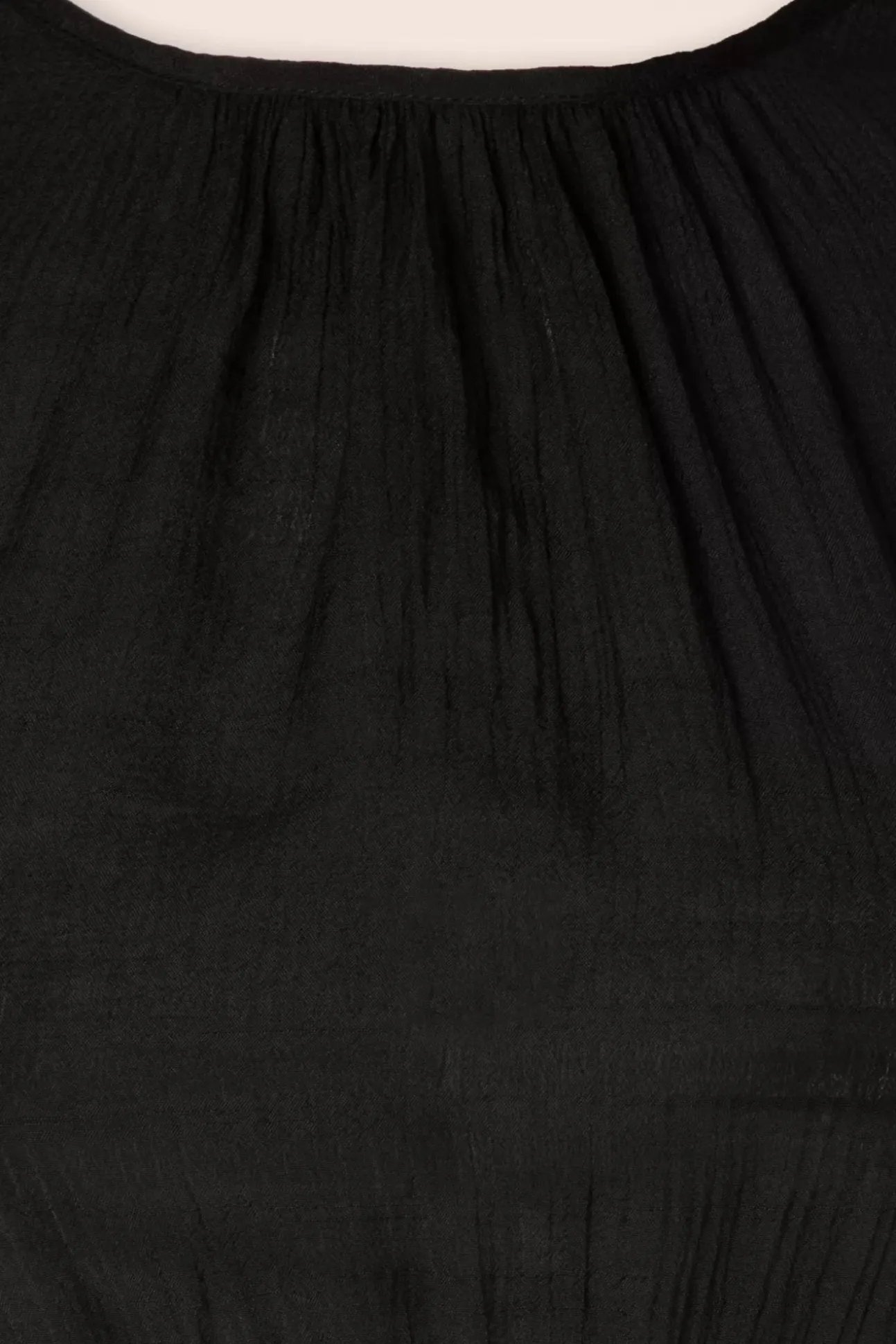 ”Every Woman Needs Good Basics!” Ze Is Uitgevoerd In Een Luchtige, Soepel Vallende En Licht Doorschijnende Zwarte Viscosemix, Met Een Getextureerde Linnen Look.