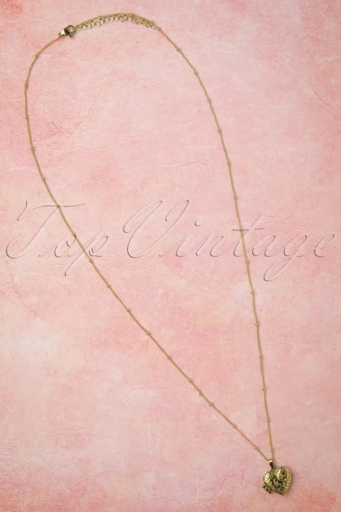 Een En Al Liefde Voor Deze 50S Heart Locket Necklace In Gold! Deze Korte, Goudkleurige Ketting Is Verfraaid Met Speelse Bolletjes En Is Voorzien Van Een Hartvormig Filigraan Medaillon Waar Je Bijvoorbeeld Een Fotootje Van Een Dierbare In Kan Doen. L-O-V-E!