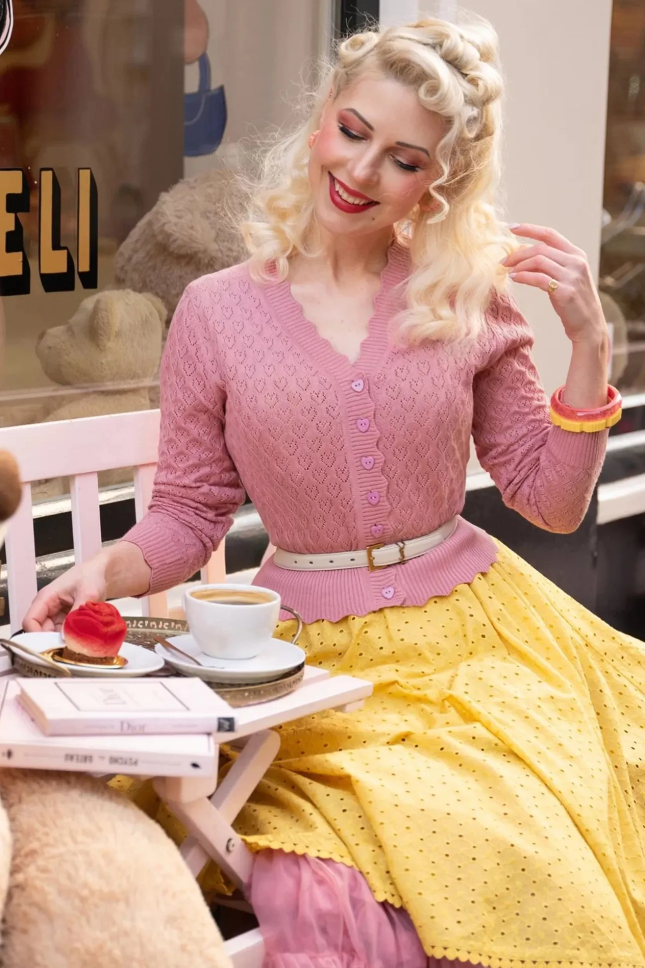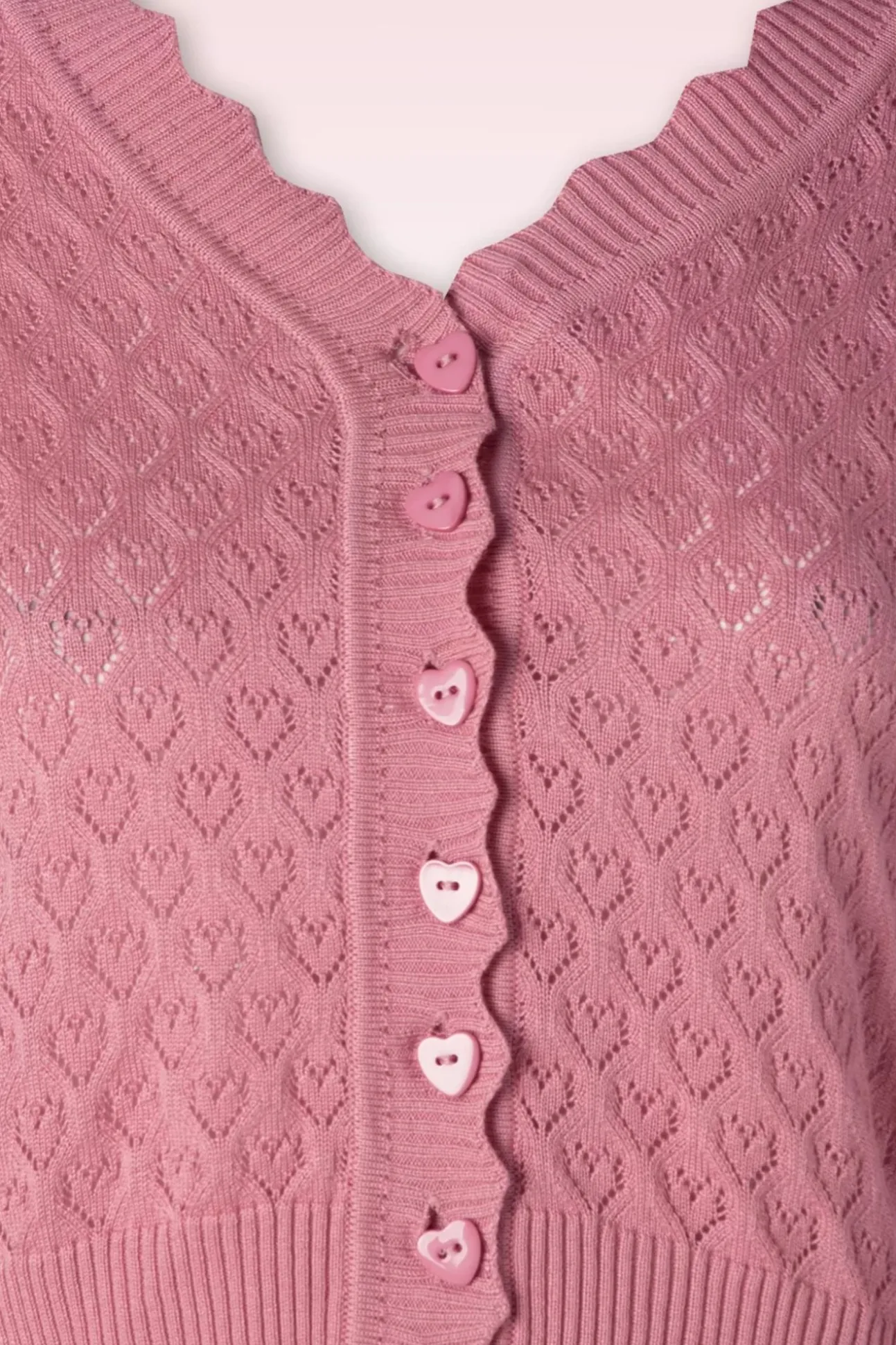 Liefde Is… Deze Cardigan! Ze Heeft Een Reeks Hartjesknopen En Is Uitgevoerd In Een Fijn Gebreide, Stretchy, Lichtroze Viscose-/Katoenmix Met Een Fantastisch Opengewerkt Hartjespatroon Voor Een Heerlijk Draagcomfort. Ben Jij Al Verliefd?