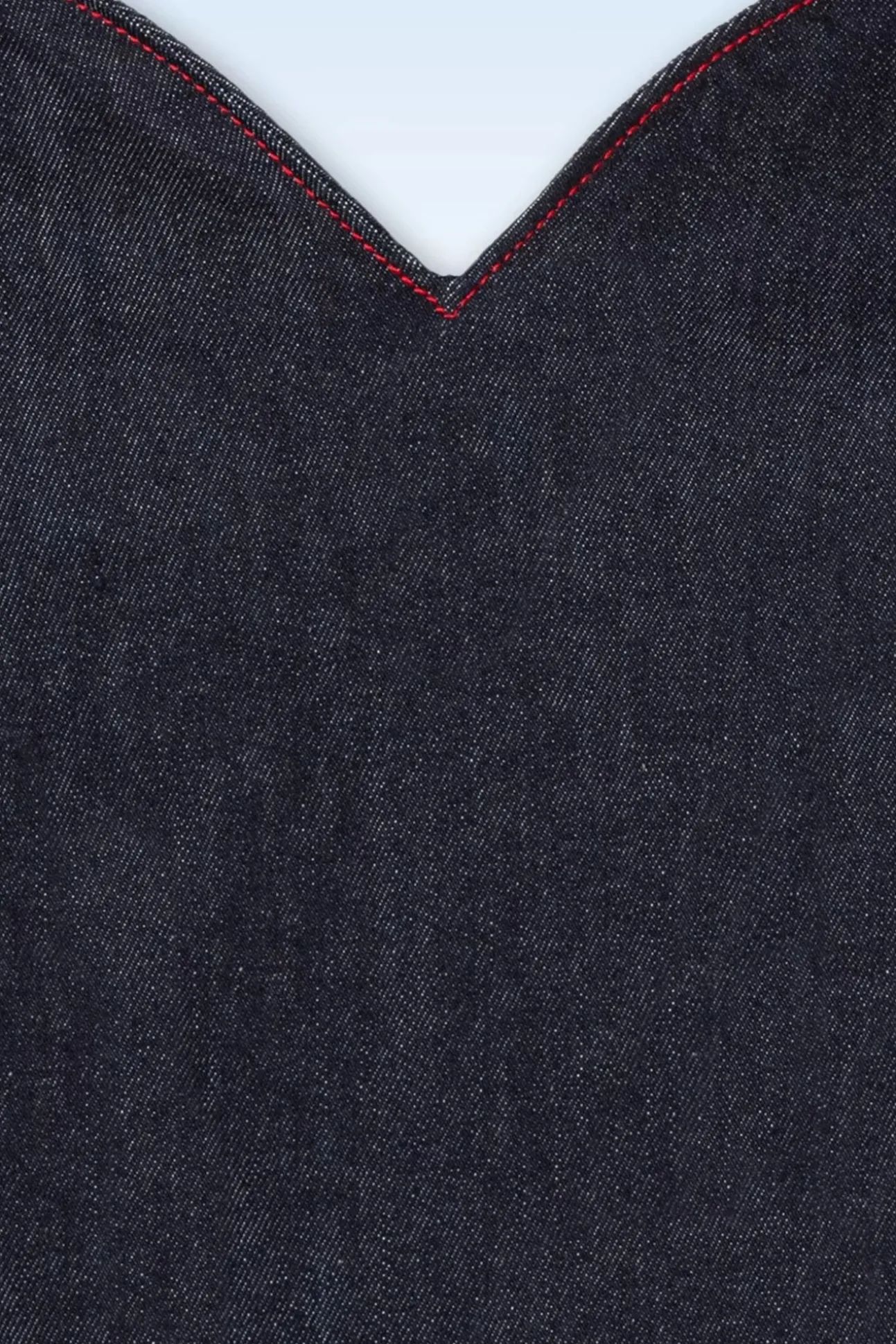”In The Right Denim A Woman Can Conquer The World!’ Ons Eigen Merk Rock-A-Booty Staat Bekend Om Haar ‘Denim Dreams’… En Deze 50S Jenna Pencil Dress In Dark Denim Is Een Denim Droom Die Ons Hartje Op Hol Laat Slaan! Jenna Heeft Een Sassy V-Halslijn, Korte Kapmouwtjes En Een Brede Riem Die Je Taille Perfect Accentueert. De Prachtige Stevige, Donkere Denimblauwe Katoenmix Met Een Lichte Stretch, Volgt Je Rondingen Perfect En Is Afgewerkt Met Rood Stikwerk Voor Die Authentieke Touch. Rock Your Booty… Uhhh… Body In Deze Curve-Hugging Denim Dress! 😉