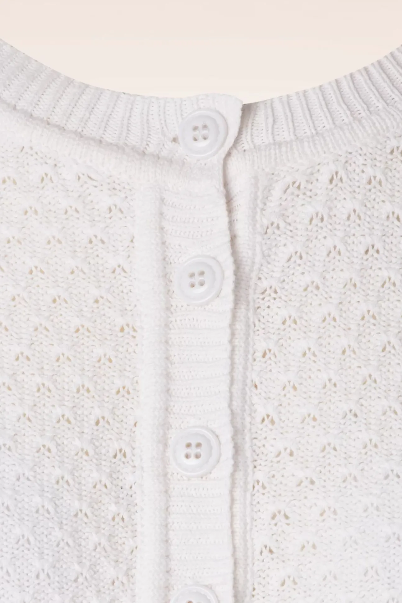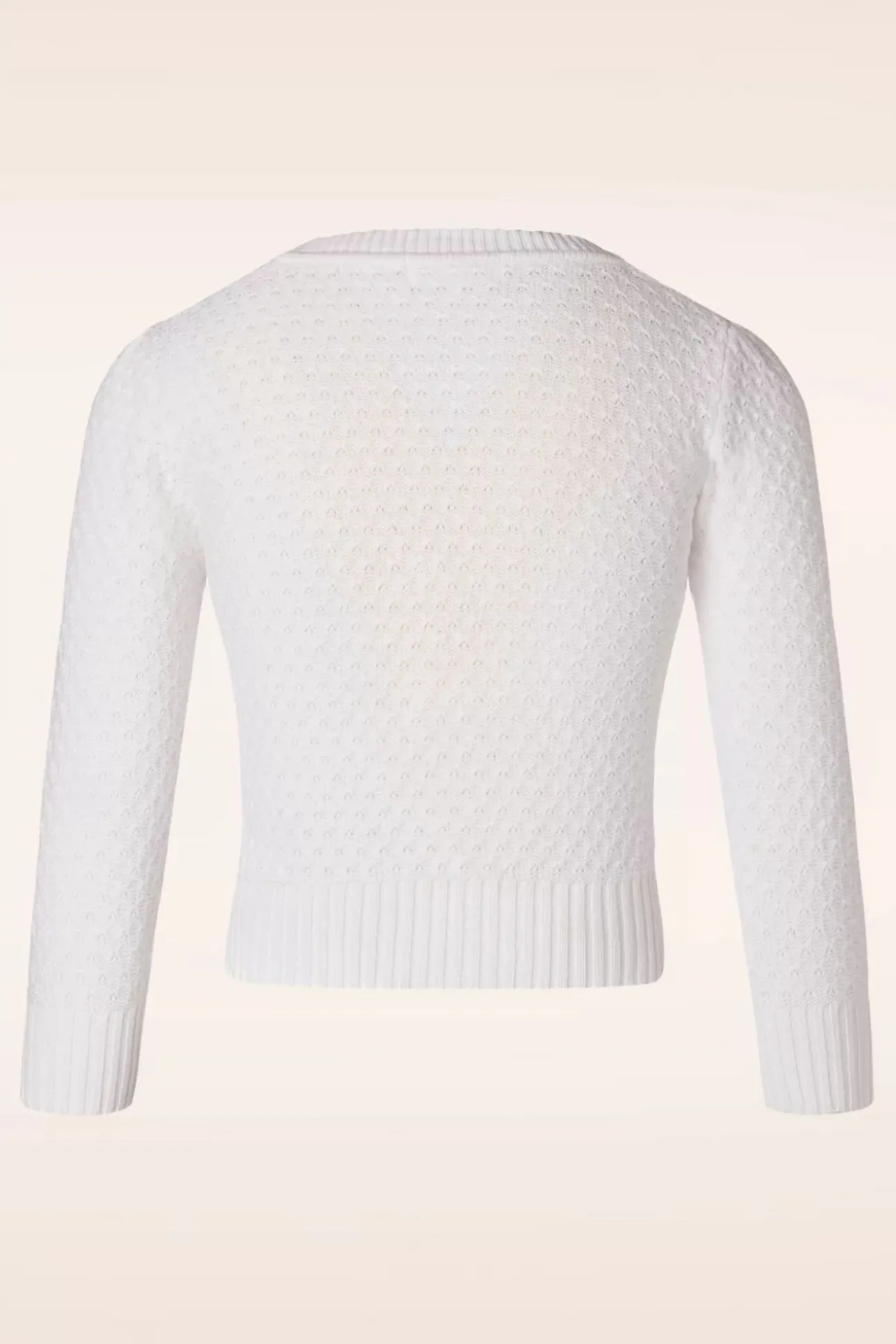 De Combinatiemogelijkheden Zijn Eindeloos Met Deze 50S Jennie Cardigan In White… Online In Nederland, Duitsland En Frankrijk Exclusief Verkrijgbaar Bij Topvintage! Vestjes Zijn Vaak Ondergewaardeerde Kledingstukken Maar Laten We Daar Eens Verandering In Brengen. Je Draagt Ze Open Of Gesloten En Zorgen Ervoor Dat Je De Rest Van Je Garderobe Ook Tijdens Koudere Dagen Kunt Dragen, Daar Verdienen Ze Toch Wel Wat Credits Voor?! Deze Veelzijdige Topper Heeft Een Klassieke Snit Met Een Ronde Halslijn, 3/4 Mouwen En Stretchy Ribboord Voor Een Mooie Pasvorm. Uitgevoerd In Een Dikkere Maar Heerlijke Soepele En Stretchy, Fijngebreide, Witte Katoen Met Een Subtiel Patroon. Jennie Verdient Echt Een Plaatsje In Jouw Kledingkast, Toch?