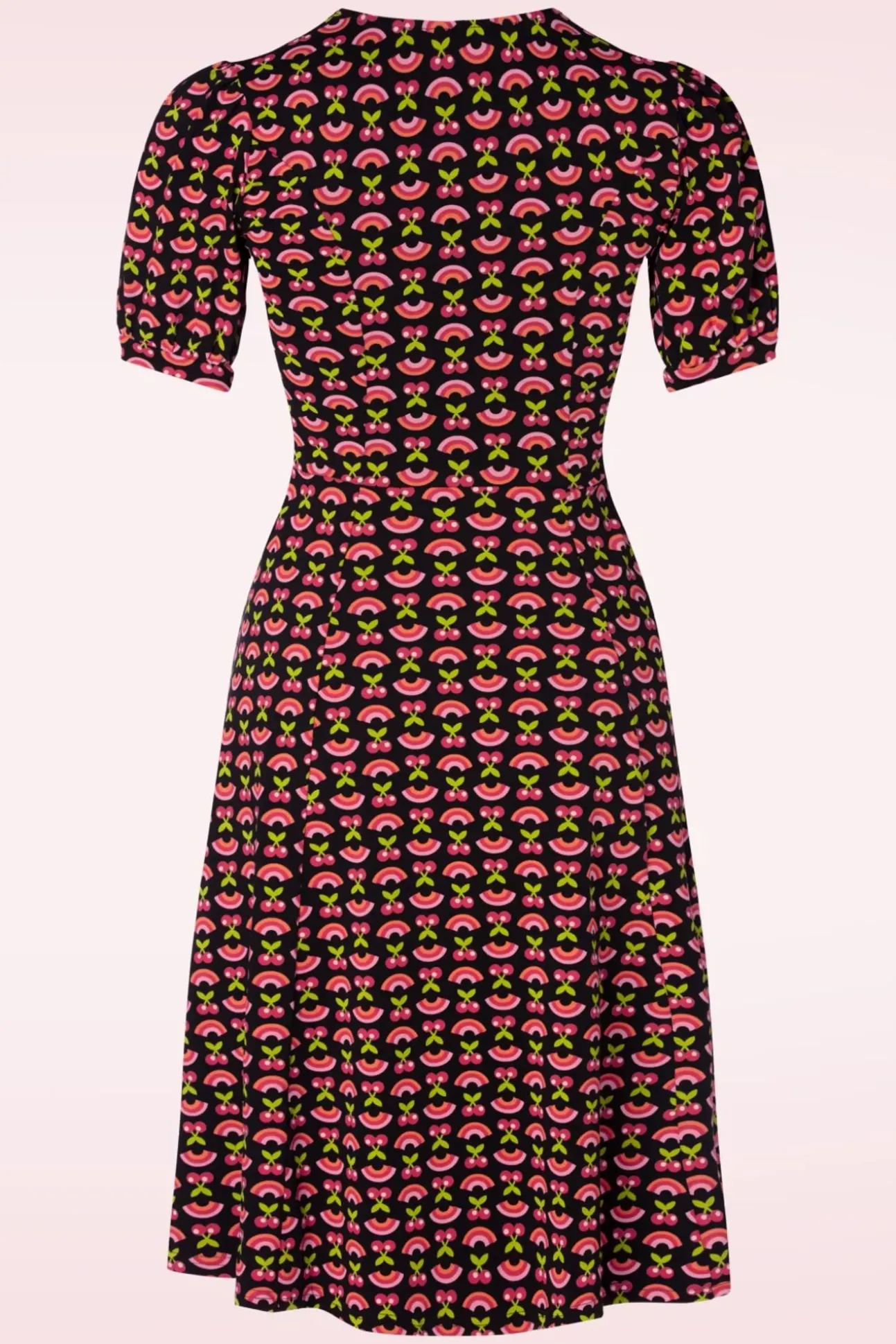”Vitamin Summer!” Ze Is Uitgevoerd In Een Super Comfortabele En Stretchy, Zwarte Katoenmix Voorzien Van Een Geweldige Print Met Kersjes En Regenbogen.