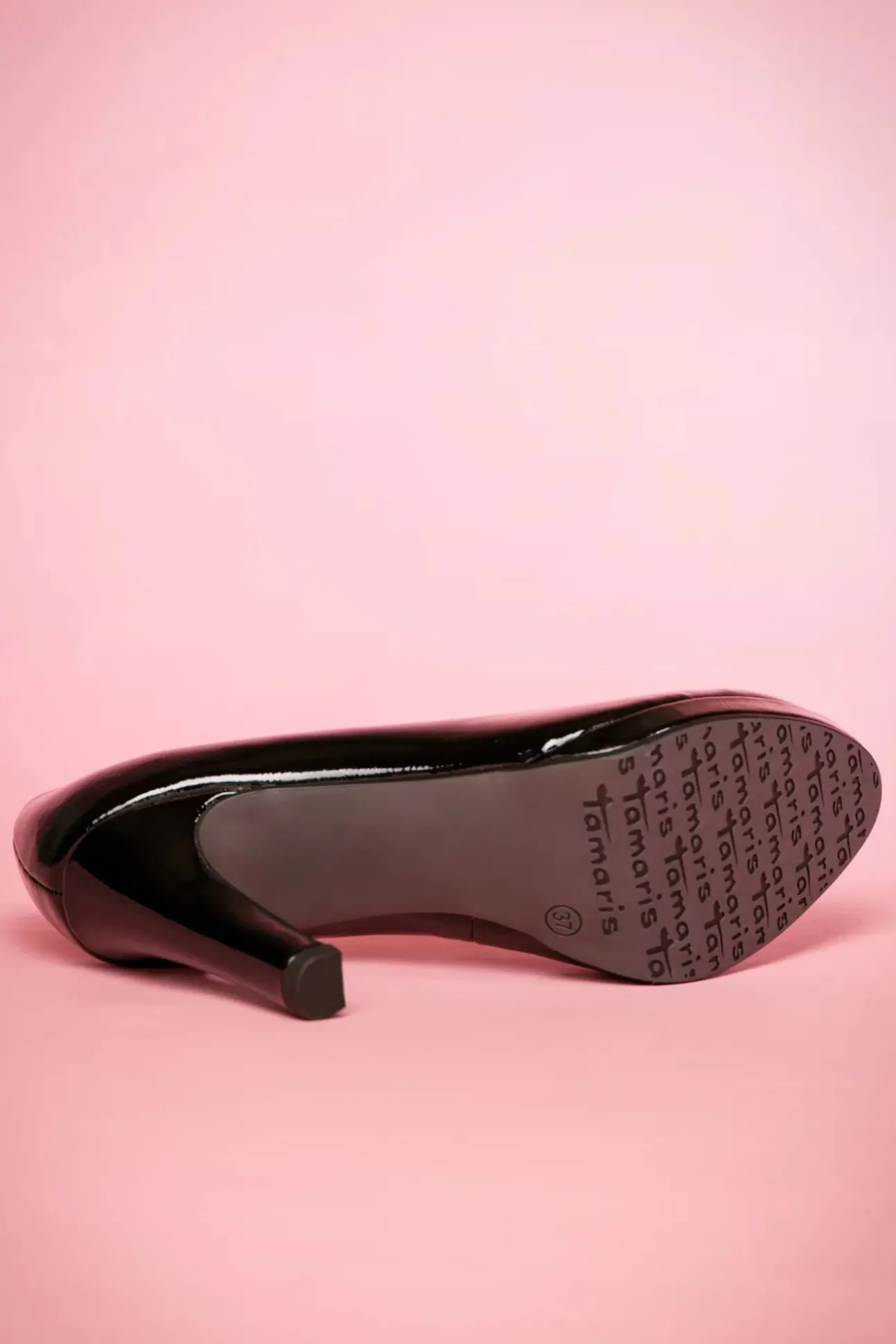 ”Kill Them With Kindness… And Really Great Shoes!” Zoals Deze 50S Katie Laquer Pumps In Black! Ze Zijn Prachtig Om Te Zien Dankzij Het Zwarte ‘Faux’ Lakleder En De Elegante Hoge Hak. Bovendien Zitten Ze Ook Nog Eens Zeer Comfortabel Dankzij Het Kleine Plateau En Het Zachte Voetbed Dat Zich Op Den Duur Aanpast Aan De Vorm Van Je Voet. Draag Ze Op Kantoor, Naar Een Feestje, Of Gewoon Omdat Het Kan! ”And Remember… You Deserve New Shoes!”