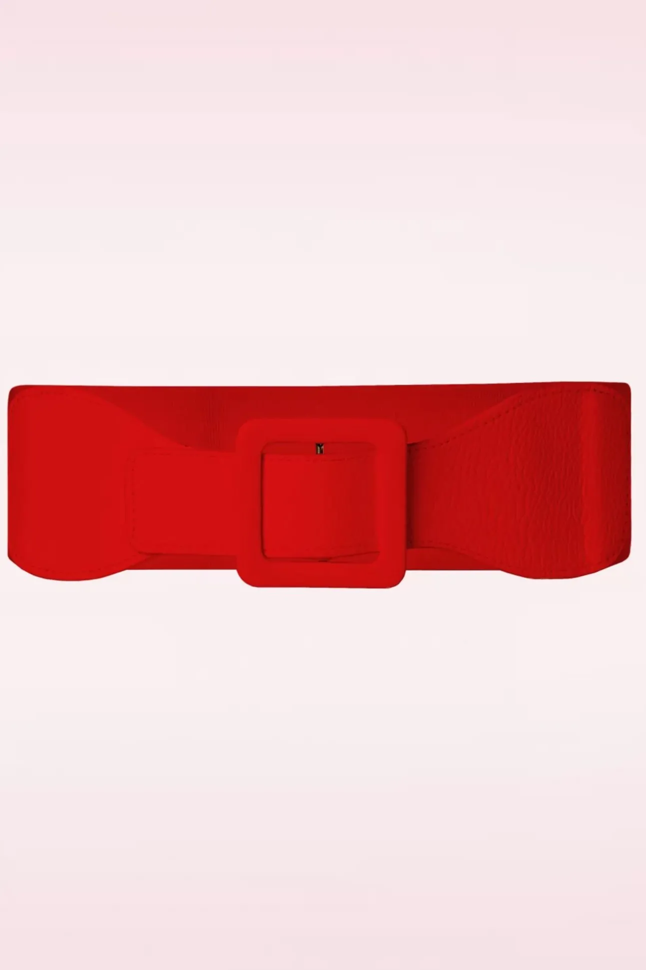 Met Deze 50S Ladies Day Out Square Belt In Red Creëer Je Een Prachtig Look In Een Handomdraai! Uitgevoerd In Felrood ‘Faux’ Leder Met Een Vierkante Vintage Stijl Gesp En Een Comfy Elastische Band. Je Mag Trots Zijn Op Je Silhouet!