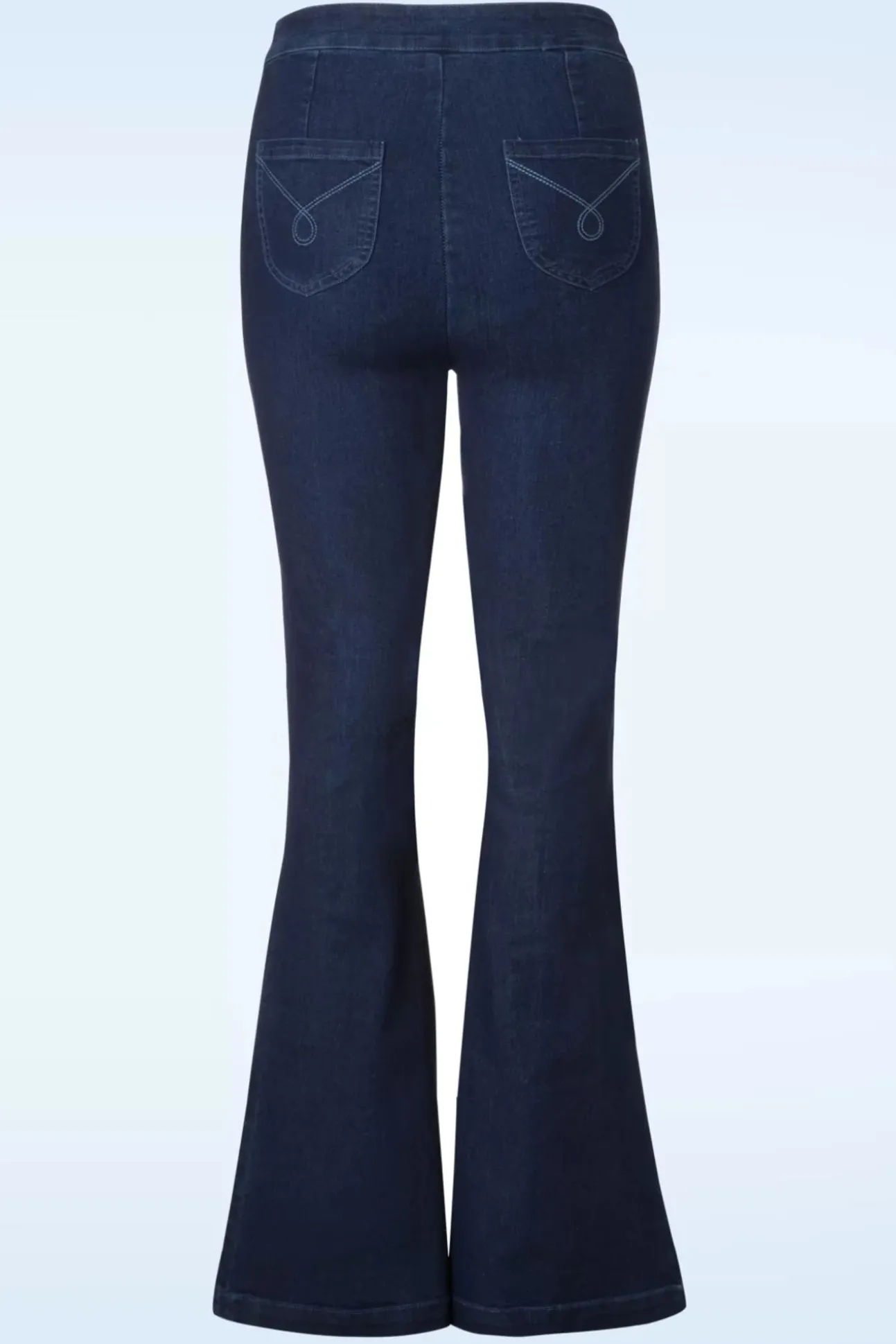 Deze 70S Legs Eleven Flared Trousers In Denim Is Zó Comfy, Je Wilt Haar Iedere Dag Wel Dragen! Geen Wonder Dat De Flared Broeken Een Grote Trend Waren In De Seventies En Nu Een Fantastische Comeback Hebben Gemaakt! De Wijd Uitlopende Pijpen Zijn Niet Alleen Speels Maar Ook Nog Eens Super Flatterend. Uitgevoerd In Een Stevige Doch Stretchy Denimblauwe Katoenmix Voor Een Heerlijk Draagcomfort. How I Like My Trousers? Comfy, Fabulous And… Flared!