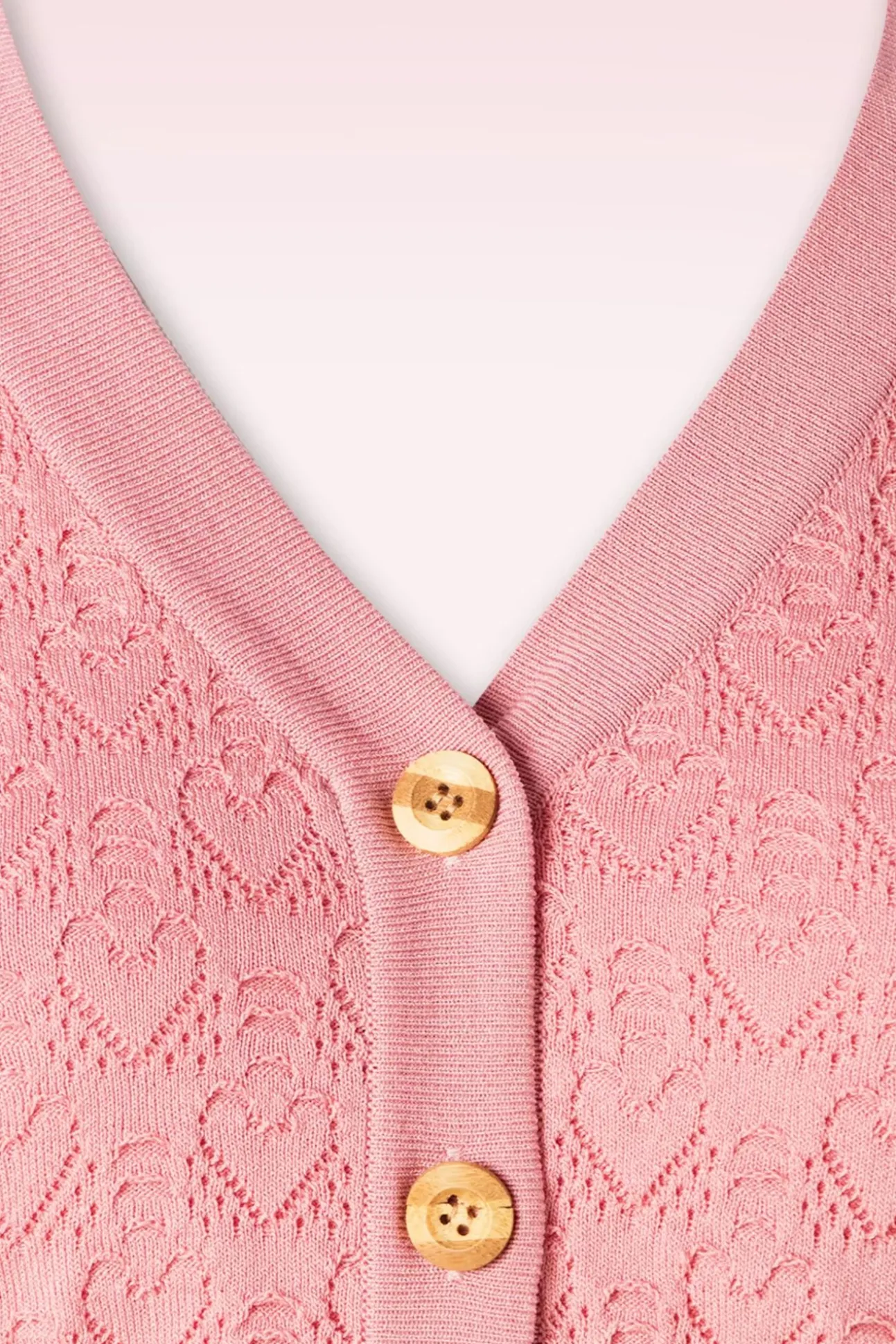 Liefde Op Het Eerste Gezicht! Deze Cute Cardigan Is Uitgevoerd In Een Zachte, Fijn Gebreide Viscosemix In Poederroze En Is Voorzien Van Een Hartjespatroon. Begint Jouw Hartje Ook Al Sneller Te Kloppen? 😉