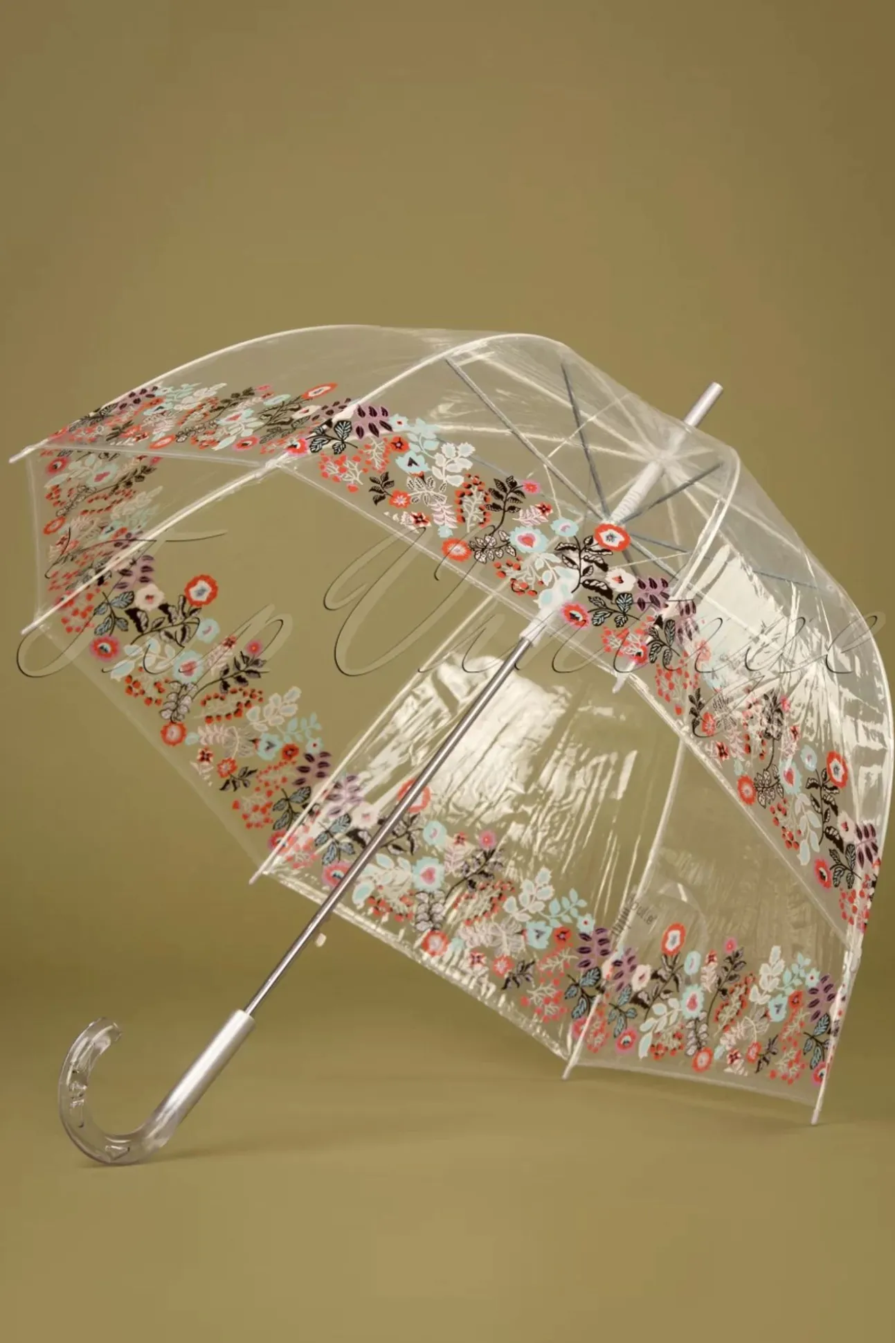 ”Life Is Not About Waiting For The Storm To Pass, It’s About Learning To Dance In The Rain!” En Dansen In De Regen Doe Je Met Deze Fabulous Nouvelle Dentelle Transparent Dome Umbrella In Multi! Je Ziet Precies Waar Je Loopt (Of Danst) In De Regen Dankzij Het Transparante Scherm Dat Gemaakt Is Van Waterdicht Polyester Voorzien Van Een Bloemenprint Op De Rand. De Paraplu Opent Eenvoudig Met Één Druk Op De Knop En Het Doorzichtige Kunststof Handvat Met Een Vleugje Zilver Zorgt Voor De Finishing Touch. ”Let It Rain!”