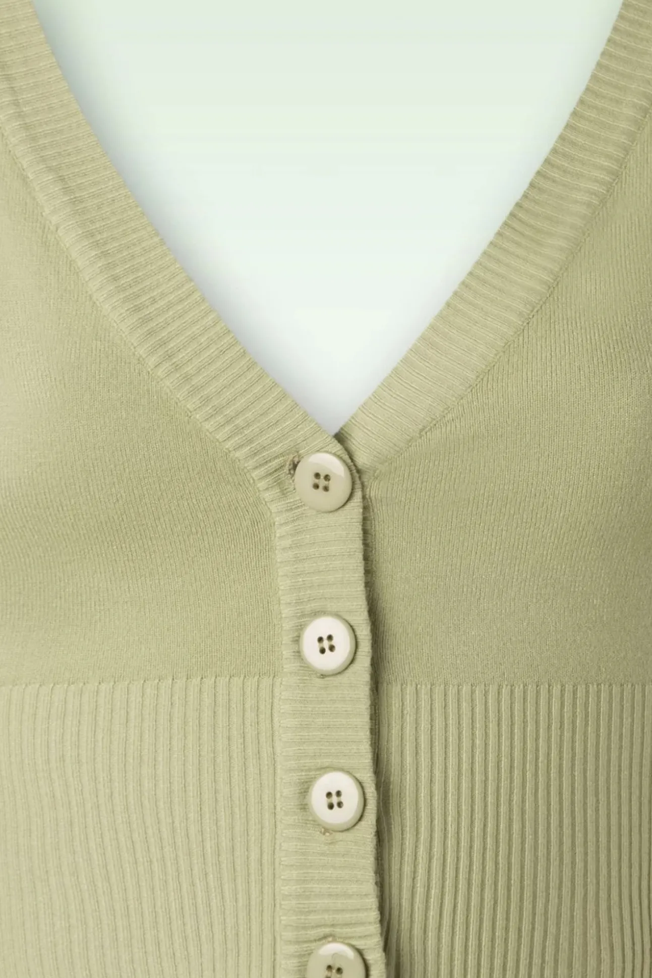 De 50S Overload Cardigan In Soft Olive Is Een Echte Klassieker! Classy In Al Haar Eenvoud En Daardoor De Perfecte Match Met Al Jouw Vintage Kledingstukken! Deze Korte Cardi Heeft Een Elegante V-Halslijn, 1/2 Mouwen En Grote Glimmende Knopen. Uitgevoerd In Een Fijngebreide, Zacht Olijfgroene Viscosemix Met Een Heerlijke Stretch Voor Een Mooie Aansluitende Pasvorm. De Combinatiemogelijkheden Zijn Eindeloos!