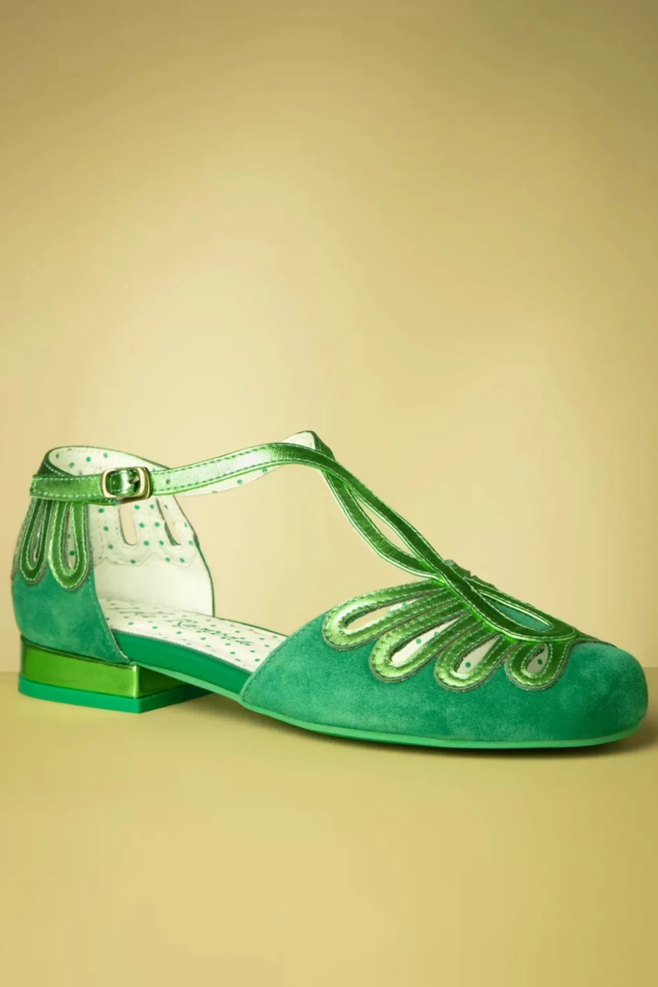”Let’s Go Green!” Deze Platte Cuties Zijn Uitgevoerd In Hoogwaardig Grasgroen Suède Met Metallic Details En Sierlijke Uitsneden.