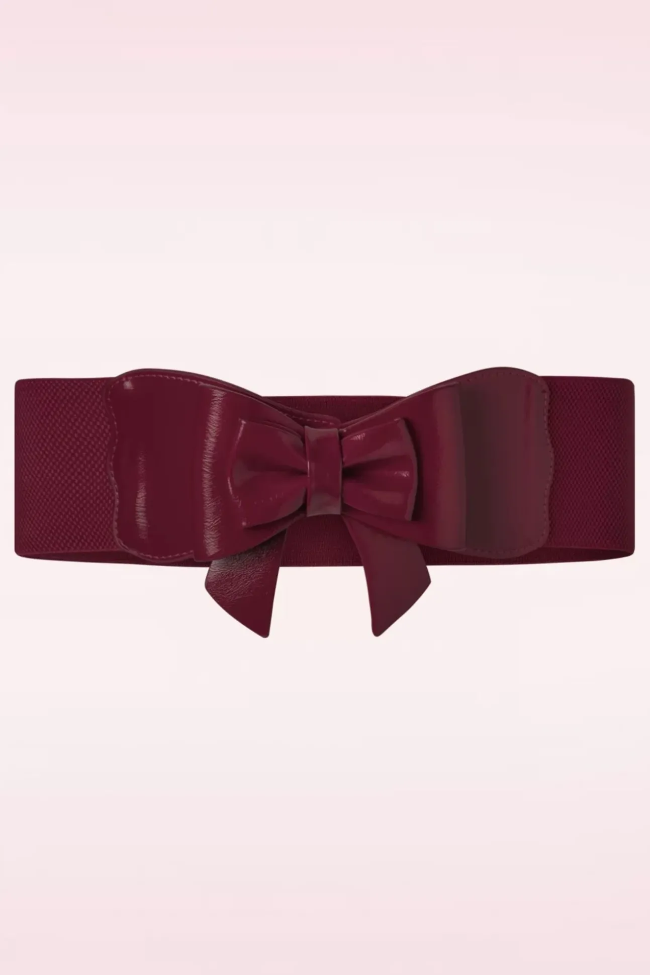 Deze Bordeauxrode Stretch Riem Creëert Een Wespentaille In Een Handomdraai! Voorzien Van Een Elastische Band En Een Strik Van Imitatie Leder.