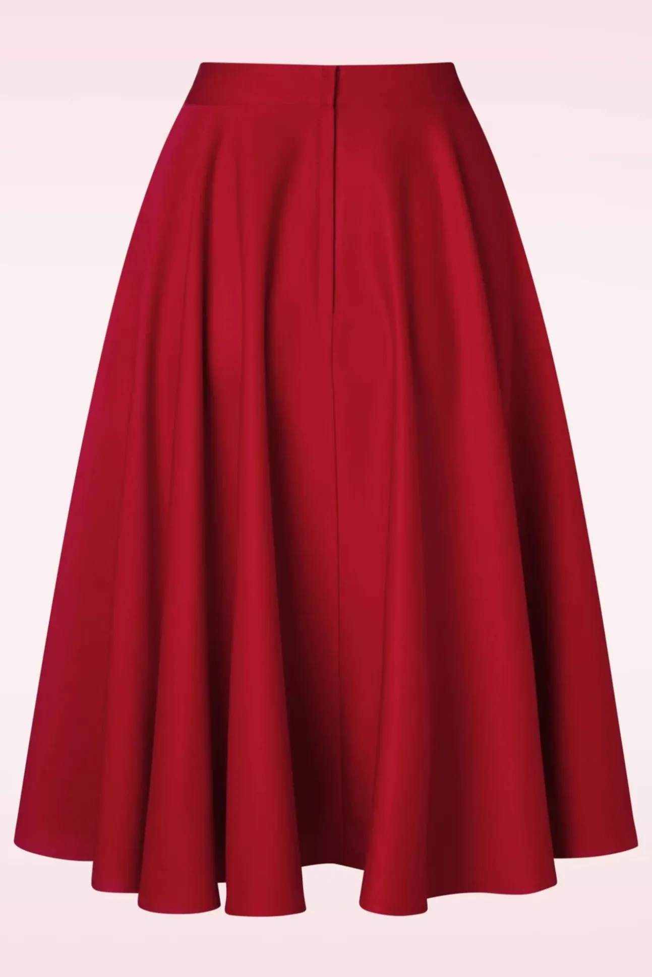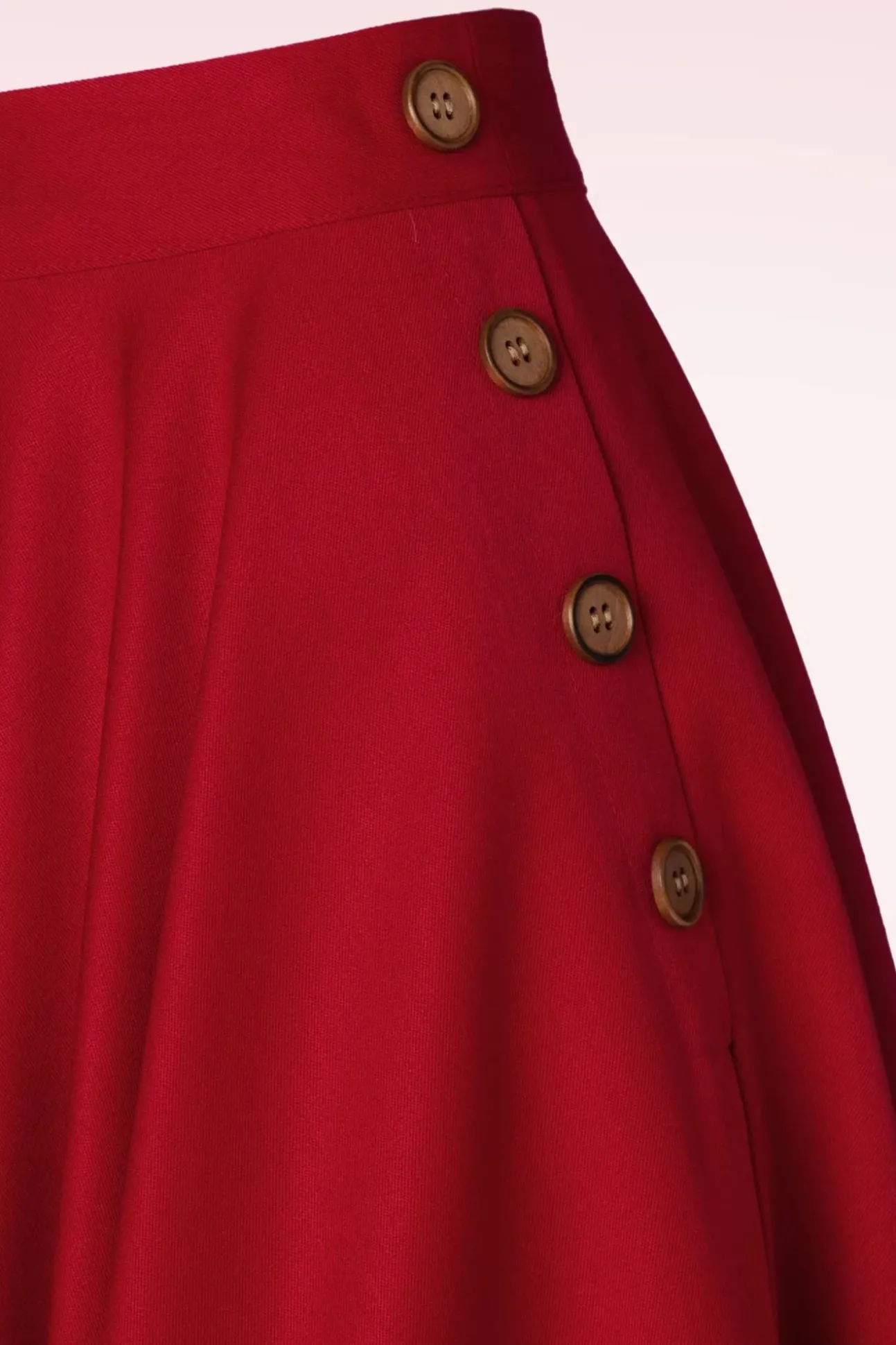 Klassiek, Tijdloos En Ontzettend Vrouwelijk! Deze Polly May Swing Skirt In Red Kun Je Eindeloos Combineren! Je Draagt Haar Hoog In De Taille Vanwaar Zij Uitloopt In Een Elegante, Zwierige Swing Rok Met Zijwaartse ‘Faux’ Knoopdetails En Handige Steekzakjes. Uitgevoerd In Een Soepel Vallend, Rood Stofje (Stretcht Amper) Die Heerlijk Draagt. Deze Swing Beauty Wordt Gegarandeerd Jouw Nieuwe Zomer Favoriet!