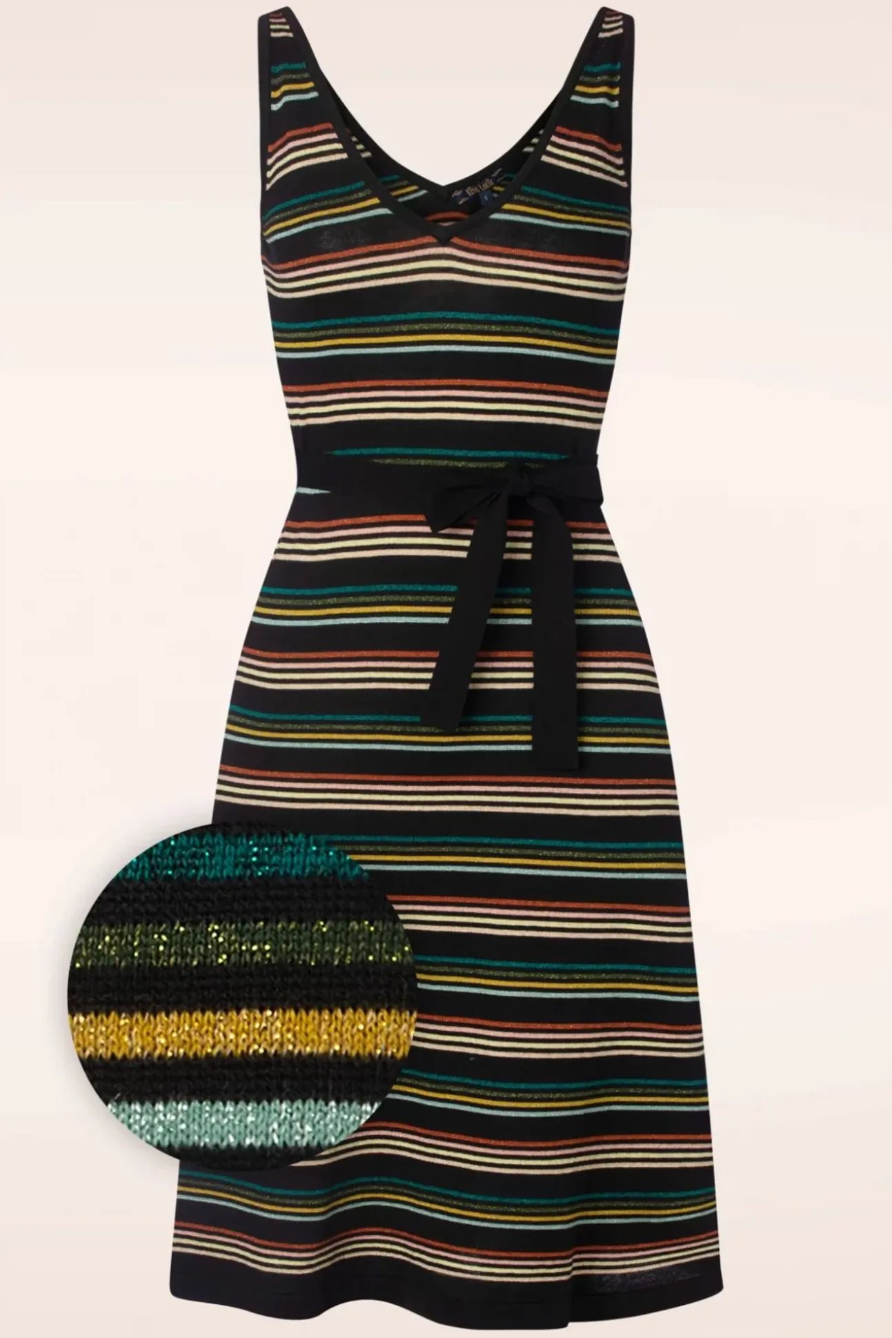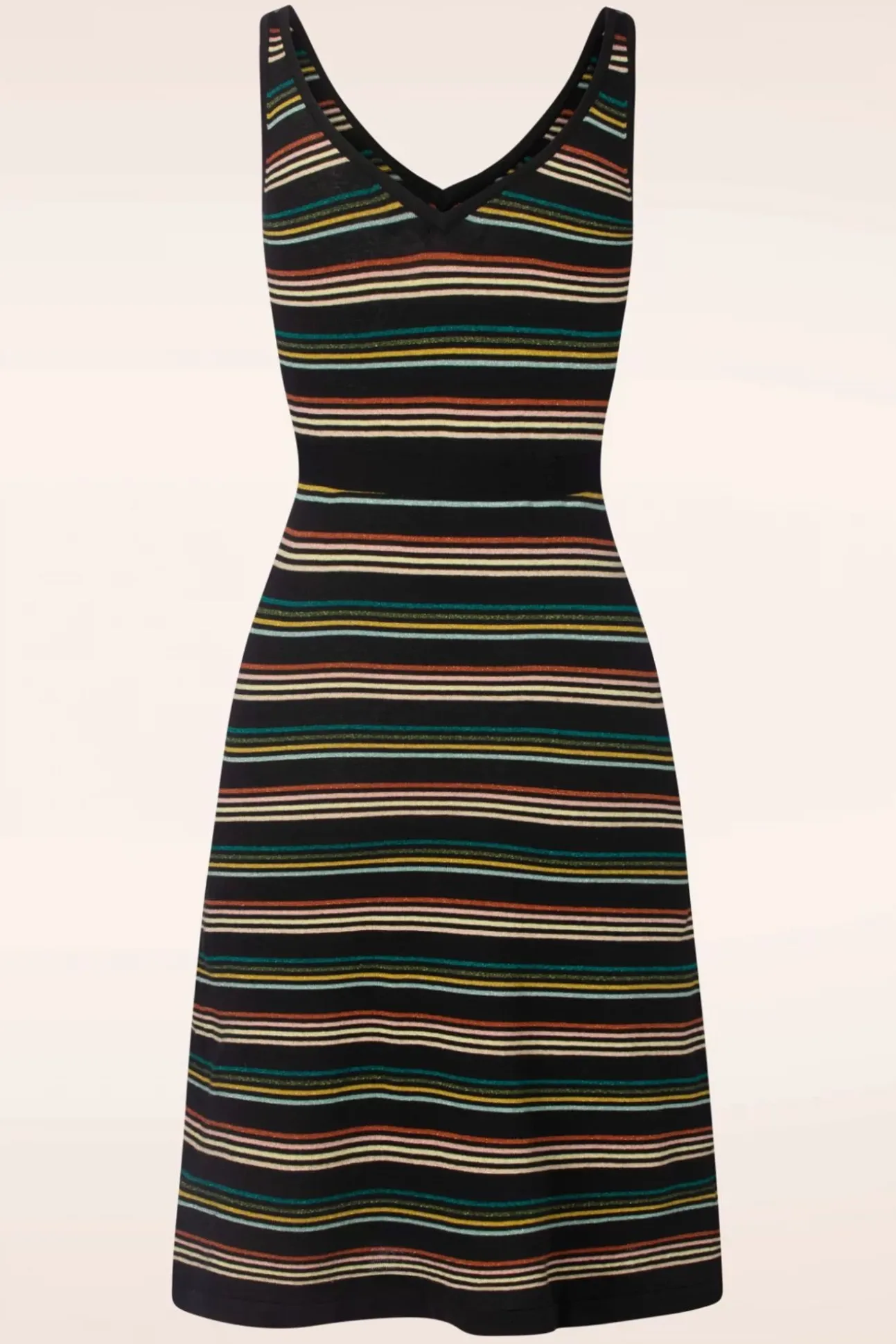 Deze Riera Stripe Deep V Knit Dress In Black Is Speels, Feestelijk En Comfortabel Tegelijk! Het Speelse A-Lijntje Is Niet Alleen Geweldig Om Te Zien Maar Is Ook Nog Een Super Flatterend, Win-Win 😉 Ze Is Uitgevoerd In Een Soepele En Stretchy, Fijngebreide, Zwarte Bio-Katoenmix Met Een Glitterstreepjes Print Die Heerlijk Draagt. Klik Haar Maar Snel In Je Shopping Bag!