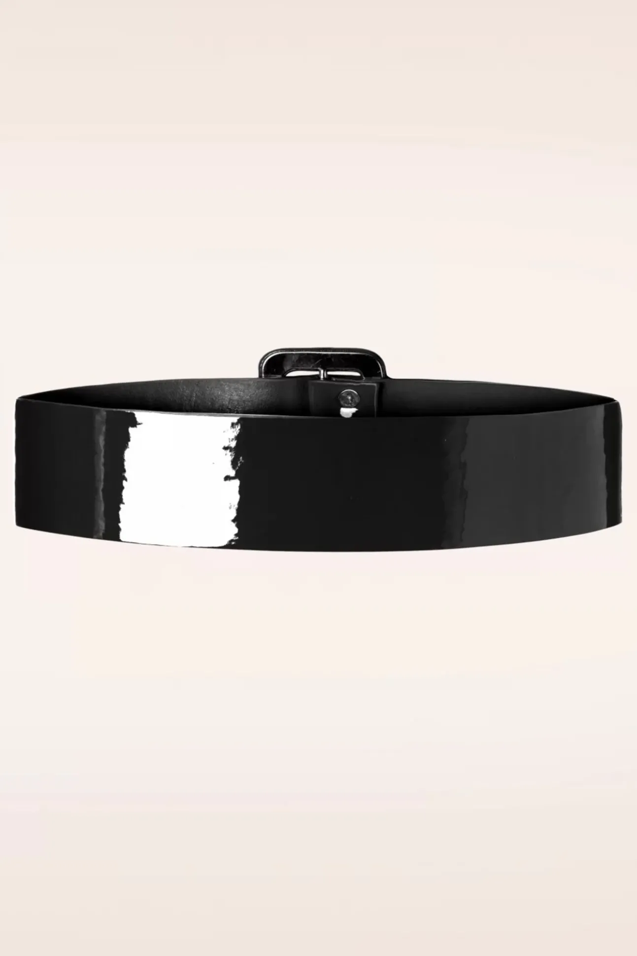 Een Echte Aanwinst Voor Je Retro Garderobe Die Elke Outfit Nét Dat Beetje Extra Zal Geven. Een Prachtige Lak Riem In Vintage Look, Uitgevoerd In Zwart Imitatie Lakleder Met Een Stevige Zwarte Gesp. Must-Have!
