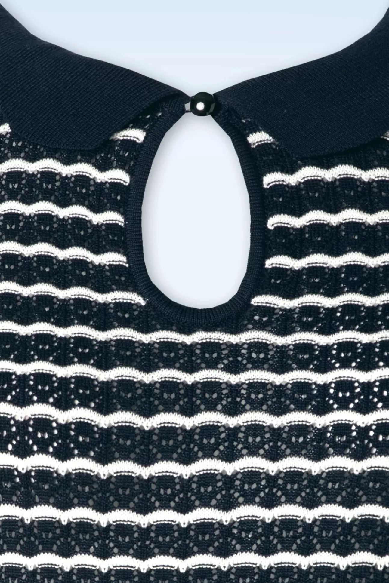 ”Cuteness Overload!” Dit Schattige Truitje Is Een Genot Om Te Dragen Dankzij De Stretchy, Grof Gebreide, Marineblauwe Viscose-/Katoenmix Met Een Opengewerkt Patroon.