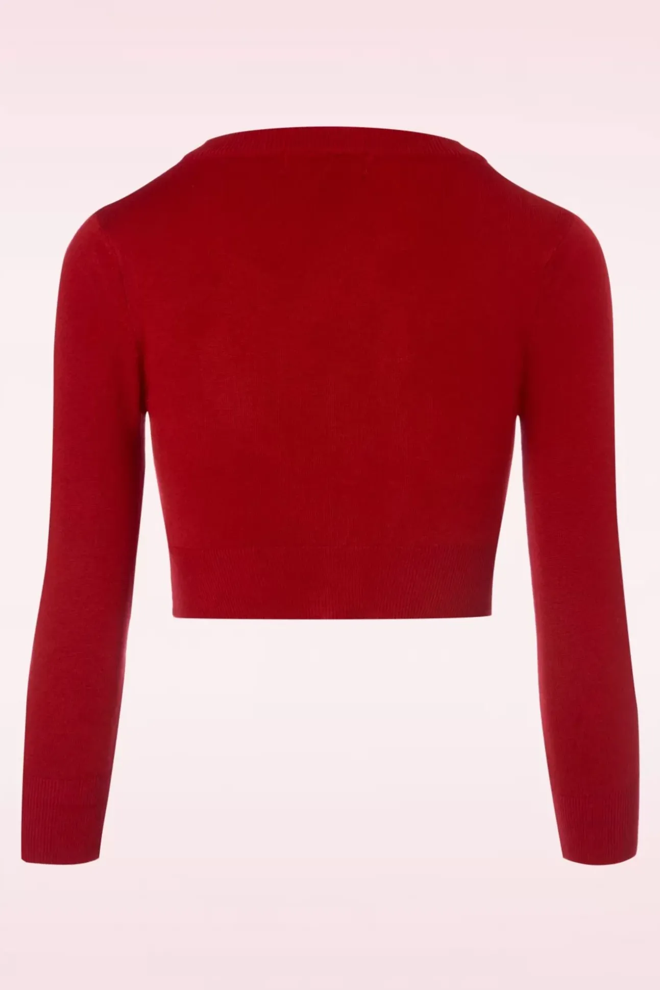 De 50S Shela Cropped Cardigan In Lipstick Red Is Een Echte Klassieker… Online In Nederland, Duitsland En Frankrijk Exclusief Verkrijgbaar Bij Topvintage! Classy In Al Haar Eenvoud En Daardoor De Perfecte Match Met Al Jouw Vintage Kledingstukken! Deze Korte Cardi Heeft Een Elegante V-Halslijn, 3/4 Mouwen En Grote Glimmende Knopen. Uitgevoerd In Een Fijngebreide, Zachte, Lipstickrode Acrylmix Met Een Heerlijke Stretch Voor Een Mooie Aansluitende Pasvorm. De Combinatiemogelijkheden Zijn Eindeloos!