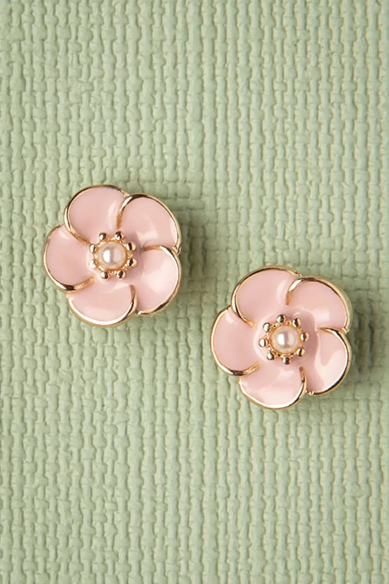 Klein Maar Oh Zo Fijn! Deze 50S Small Rose Earstuds In Soft Pink Zijn Uitgevoerd In Antiek Goudkleurig Metaal Met Lichtroze Geëmailleerde Blaadjes En Een Minuscuul ‘Faux’ Pareltje In Het Midden. ”Flowers Don’T Tell, They Show!”