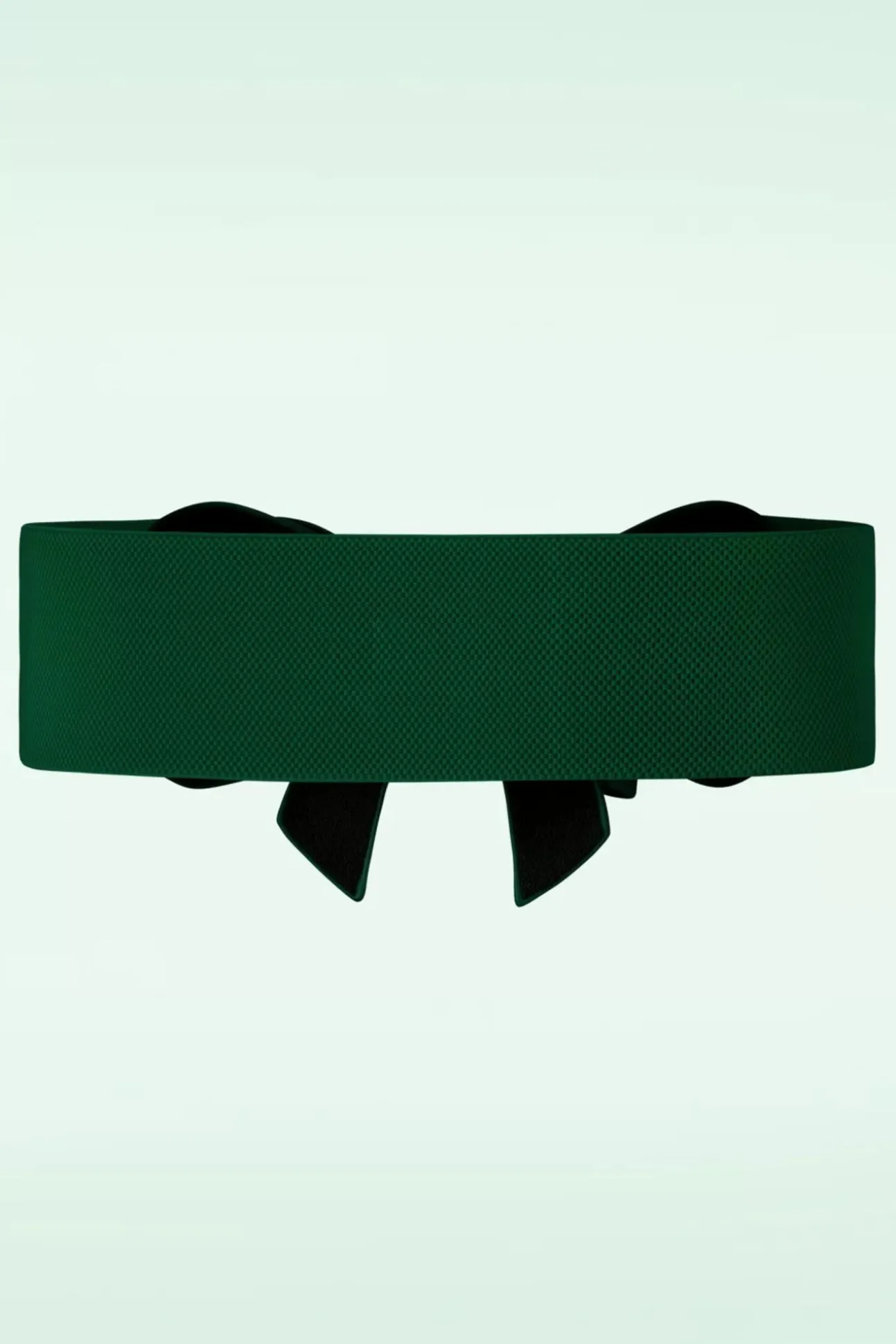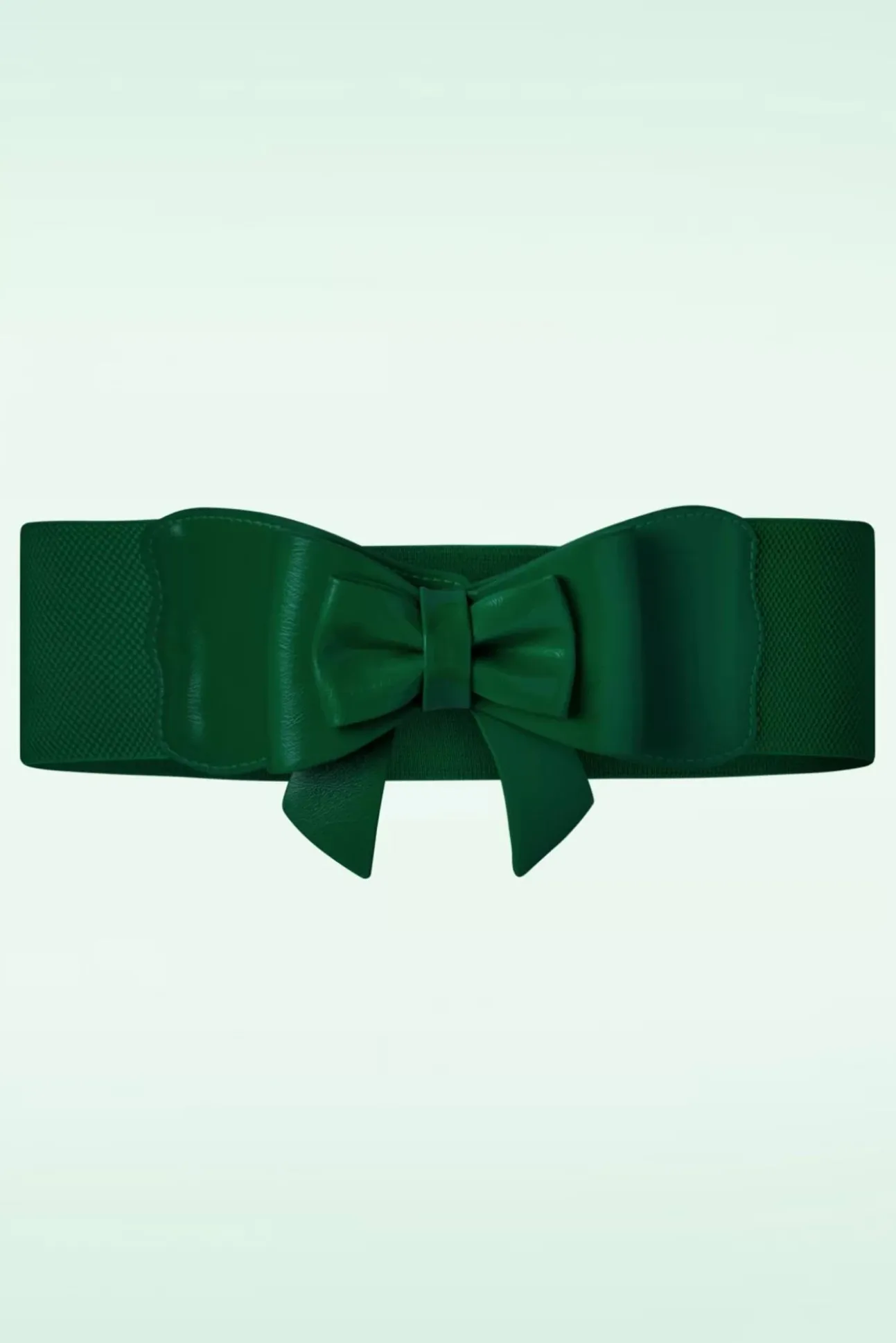 Deze 50S Play It Right Bow Belt In Bottle Green Is Een Geweldige Aanvulling Voor Je Vintage Garderobe En Creëert Een Wespentaille In Een Handomdraai! Dit Flessengroene Prachtexemplaar Heeft Een Elastische Band En Een Schattige Strik Uitgevoerd In ‘Faux’ Leder Voor Een Onweerstaanbare Fifties Touch 😉 Haak De Strik Vast Aan De Sluiting En ‘Play It Right’!