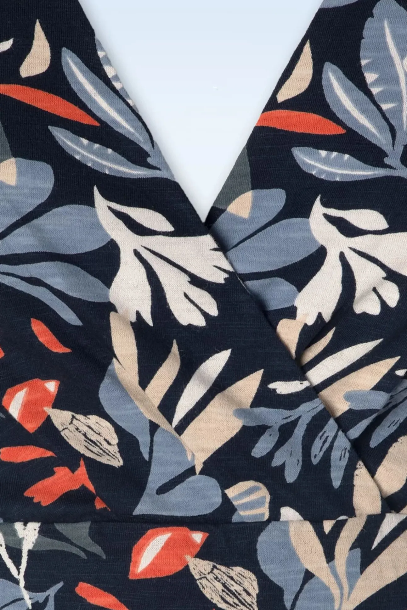 Kijk De Zon Achter De Wolken Vandaan In Deze Prachtige Maxi Jurk! Ze Is Uitgevoerd In Een Zachte En Soepele, Stretchy, Donkerblauwe Organische Katoen Met Schilderachtige Bloemen, Die Zo Comfortabel Draagt Dat Je Haar Nooit Meer Uit Wilt Trekken.