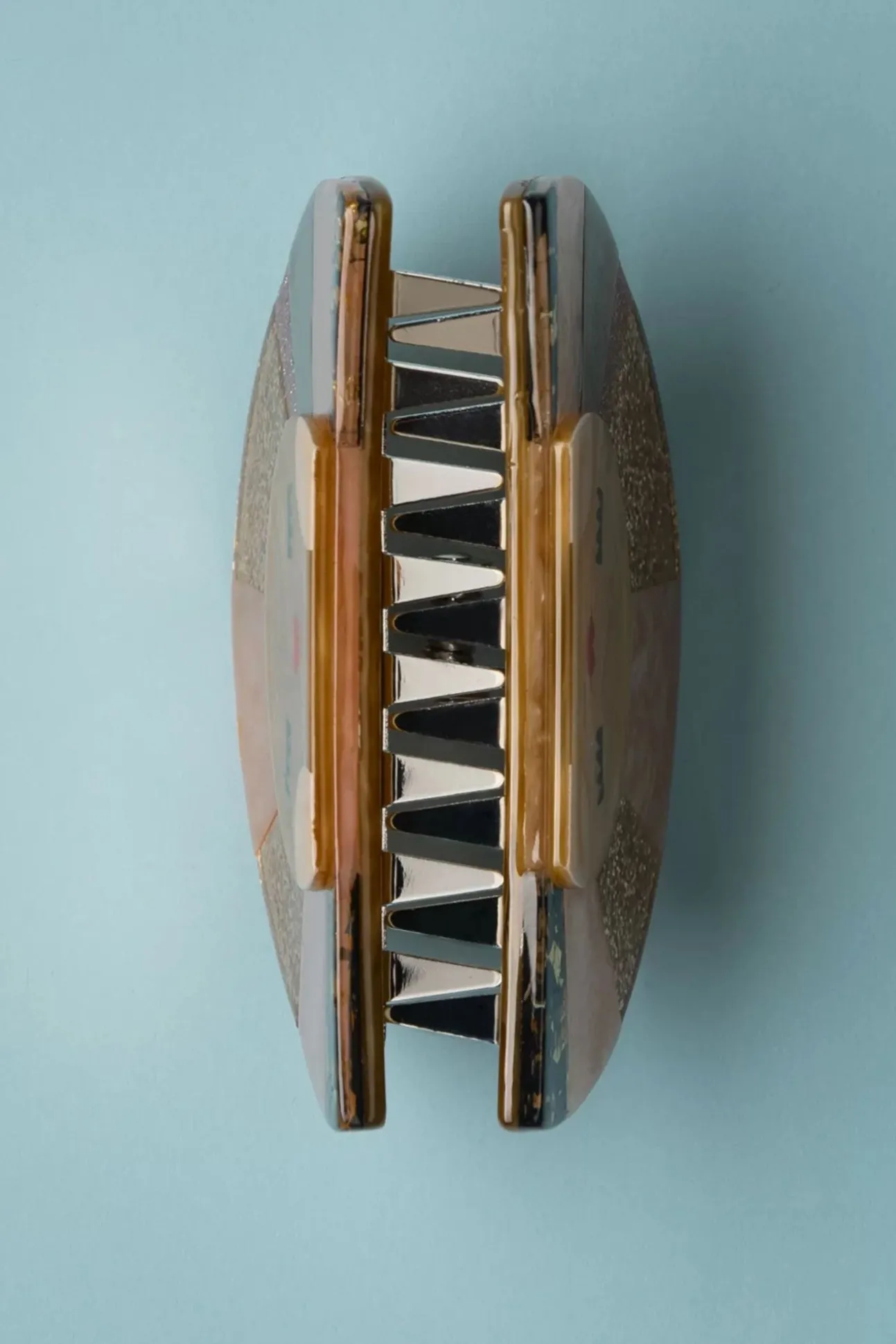 ”Turn On The Charm And Turn Up The Heat You Cheeky Ball Of Hot Plasma. You Bring A Smile To Our Dial, We Just Hope You’Ll Stay A While.” Met Trots Mogen We Zeggen Dat Deze Sun Charmer Hair Clip Claw Uit De ‘Erstwilder X Laura Blythman’ Collectie Online In Nederland, Duitsland En België Exclusief Bij Topvintage Verkrijgbaar Is! Deze Haarclip Is Handgemaakt, Hand Beschilderd, Uitgevoerd In Verschillende Lagen Hars En Afgewerkt Met Sprankelende Glitters. Dankzij De Stevige Claw Clip Blijft Ze Goed In Je Haar Zitten. ”Wear The Sunshine, Be The Sunshine!”