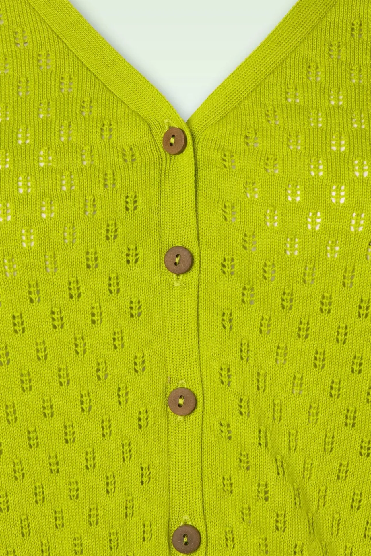 Deze Cute Cardigan Maakt Met Iedere Outfit Een ‘Perfect Match’! Ze Is Uitgevoerd In Een Zachte, Fijn Gebreide Katoen In Limegroen En Is Voorzien Van Een Opengewerkt Ajour Patroon. De Combinatiemogelijkheden Zijn Eindeloos!