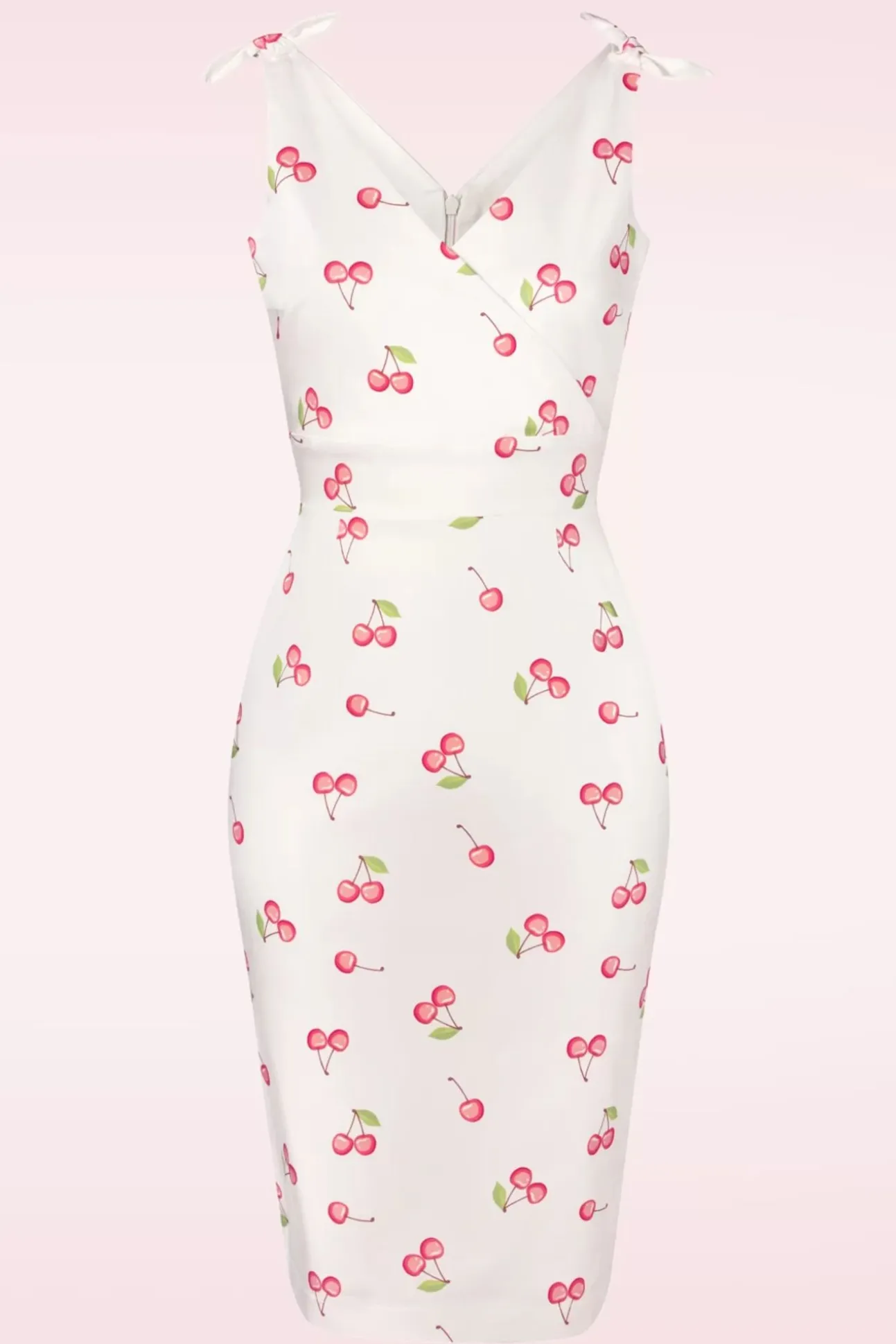 ”Destination? Paradise!” En Of Dat Nu De Franse Riviera Is Of Gewoon Aan De Kust In Eigen Land… Flaneren Doe Je In The Harper Cherry Print Pencil Dress In White Uit De Nieuwe Glamour Bunny Collectie! Een Classy, Body Hugging Pencil Dress Die De ‘sass’ In ‘sassy’ Stopt Met Haar V-Hals, Vaste Overslag En Flirty Strikdetails Op De Schouders. Uitgevoerd In Een Stevige Maar Soepele, Katoenmix Met Lieve Rode Kersjes En Een Hele Lichte Stretch Waardoor Je Rondingen Subliem Tot Hun Recht Komen En Je Zelfvertrouwen Naar Een Ongekende Hoogte Stijgt. ”Jet-Set Your Way Through Summer, Hunnie!”
