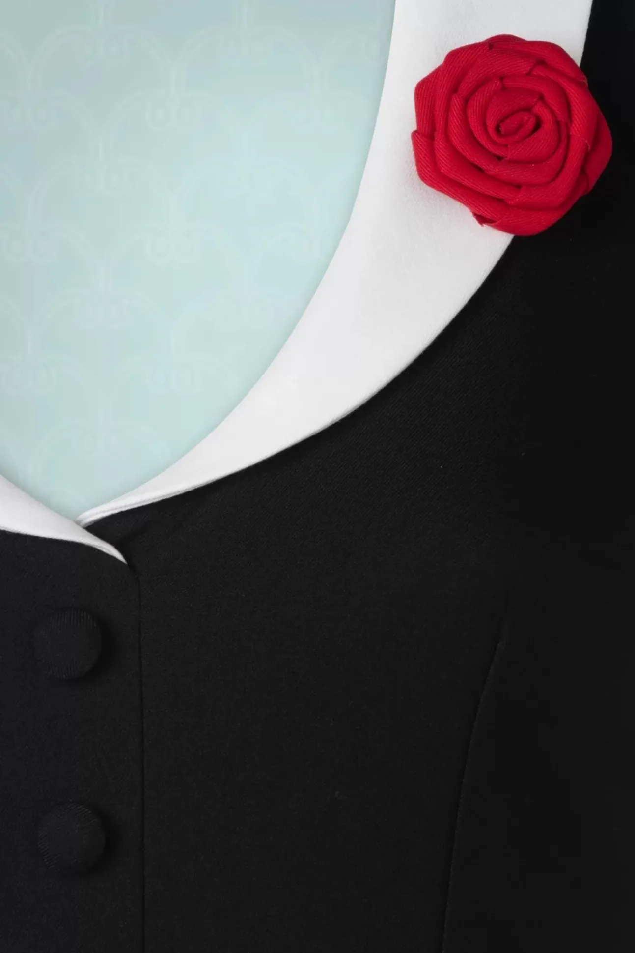 Het Is Gewoon Een Feit Dat Jumpsuits Nooit Teleurstellen, Ze Zijn Echte Klassiekers, Zo Ook The Luchia Jumpsuit In Black! Onze Eigen In-House Ontwerpers Geven Met Luchia Een Zomerse Adaptie Van Het Marlène Dietrich Pak! Dit Seizoen Hebben Onze Eigen In-House Ontwerpers Zich Laten Inspireren Door Het Thema; ‘Love Is Like A Wild Flower!’ Wilde Bloemen Zijn Een Assemblage Van Verschillende Gevoelens En Texturen, Net Als Deze Nieuwe Lente/Zomer Collectie! De Aansluitende Top In Heeft Een V-Halslijn Met Contrasterende Witte Kraag, ‘Faux’ Knopen Op Het Lijfje En Een Afneembare Rode Rooscorsage Die Je Kunt Plaatsen Waar Je Wilt. De Zwarte, Lange Wijde Pijpen En Verticale Pintuck Naad Laten Je Benen Eindeloos Lang Lijken. De Stevige, High Quality Zwarte Stof Met Een Hele Lichte Stretch Is Bovendien Een Genot Om Te Dragen! Steel De Show In Deze Beauty En Zie Er Net Zo ‘Unforgettable’ Uit Als Marlène Herself!