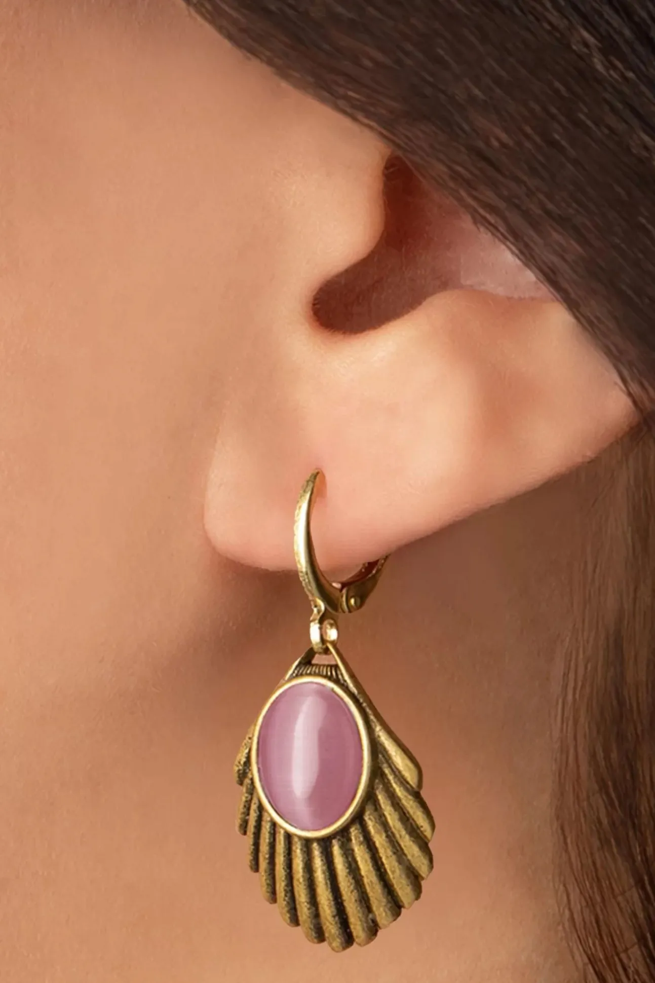 Art-Deco Inspired Maar Toch Helemaal Van Nu! Deze Oorbellen Zijn Uitgevoerd In Antiek Goudkleurig Messing Met Een Poederroze, Glazen Steen.