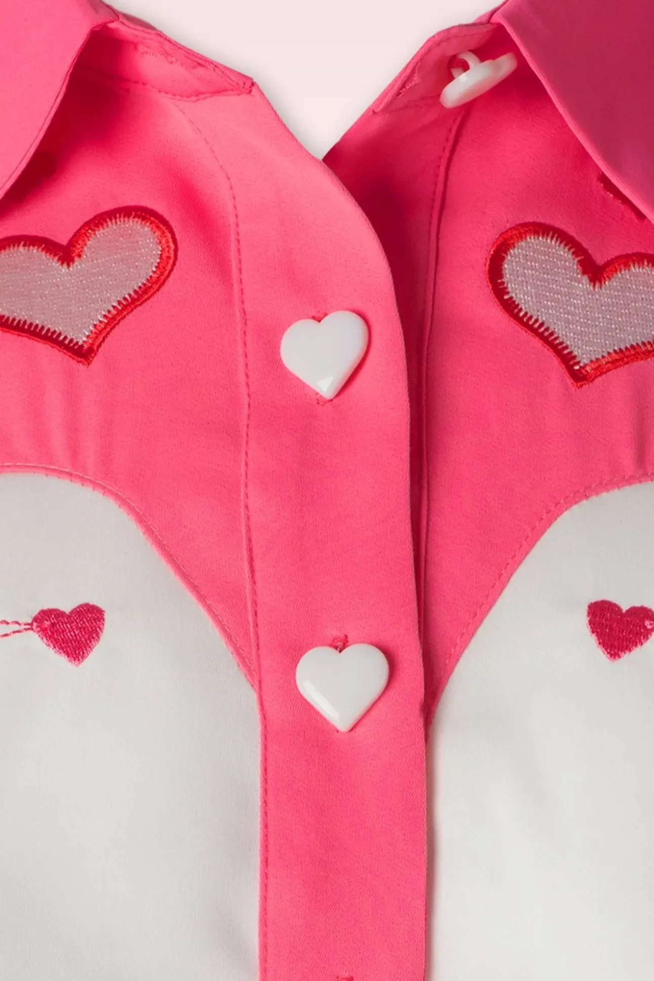 ”Love Is In The Air!” Uitgevoerd In Een Stevig, Maar Soepel Wit Stofje (Lichte Stretch) Met Fuchsia Details En Geborduurde Hartjes <3!